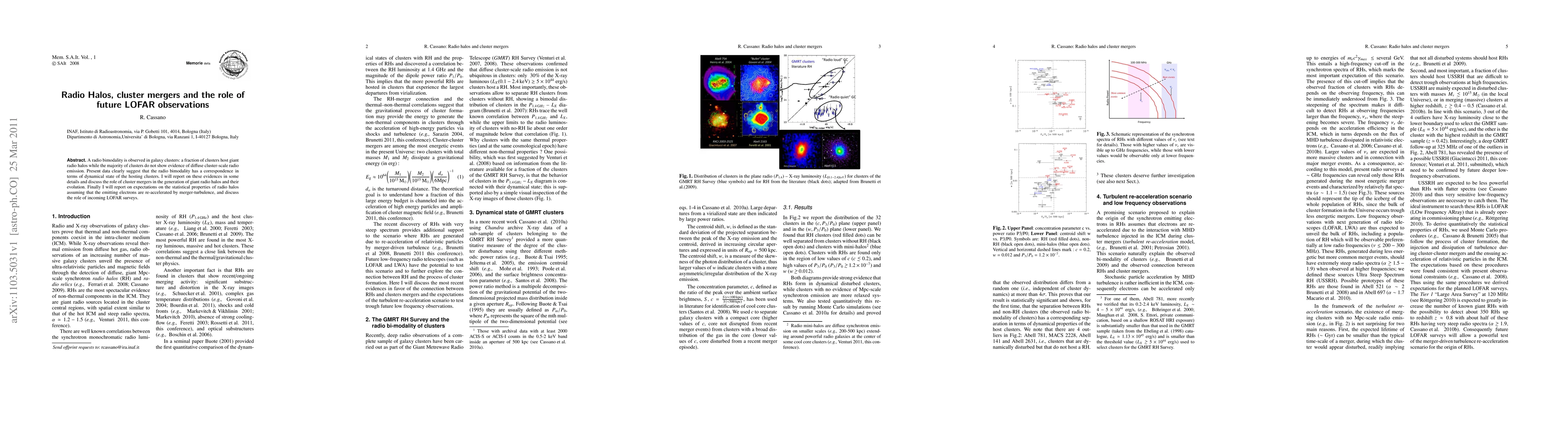 This paper investigates the radio bimodality in galaxy clusters, linking the presence of giant radio halos to the dynamical state and merger activity of clusters. It discusses the role of cluster mergers in generating these halos and anticipates the statistical properties of radio halos based on merger-induced turbulence, while highlighting the potential contributions of future LOFAR observations.