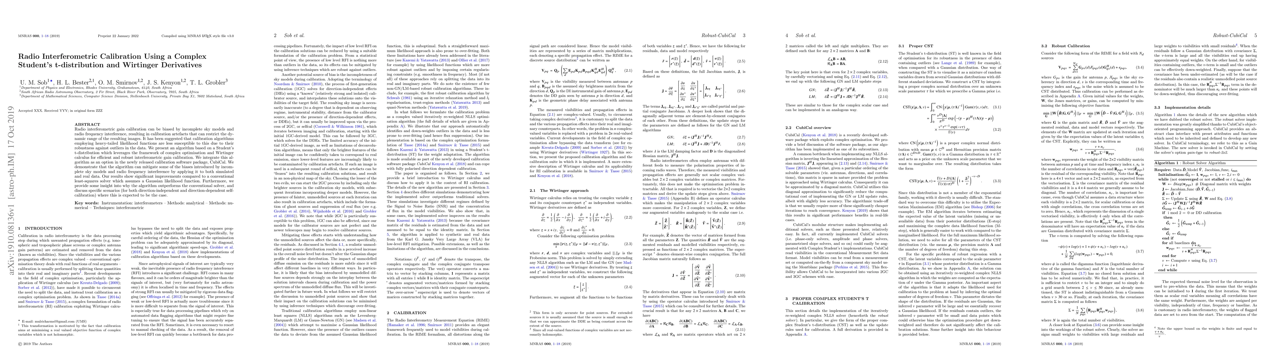 This paper proposes a novel calibration algorithm for radio interferometric gain calibration using a complex Student's t-distribution and Wirtinger derivatives, demonstrating improved performance over conventional least-squares methods by mitigating biases from incomplete sky models and radio frequency interference. The algorithm is integrated into the new CubiCal software package and shows significant improvements in calibration accuracy.