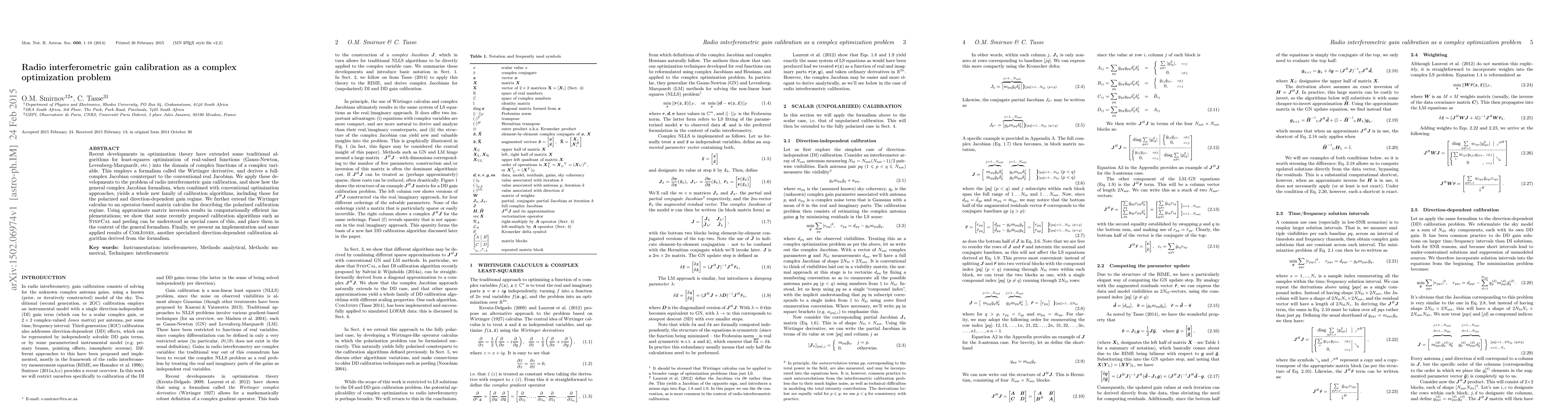 This paper explores the application of advanced optimization techniques, specifically the Wirtinger derivative and complex Jacobian formalism, to radio interferometric gain calibration. It introduces a new family of calibration algorithms, including those for polarized and direction-dependent gains, and demonstrates their efficiency and relation to existing methods like StefCal and peeling.