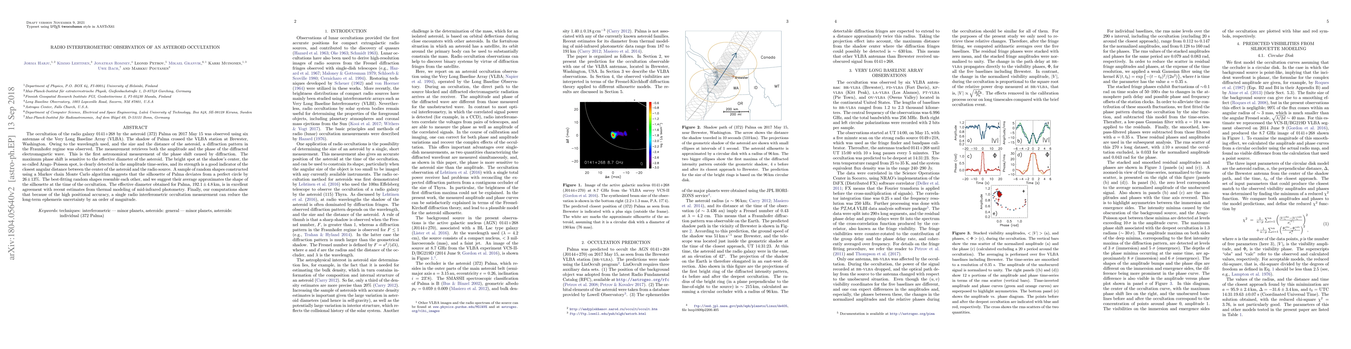 Astronomers used radio interferometry to observe an asteroid's occultation of a radio galaxy, detecting the first astronomical measurement of phase shift caused by diffraction and retrieving the asteroid's effective diameter with high accuracy.