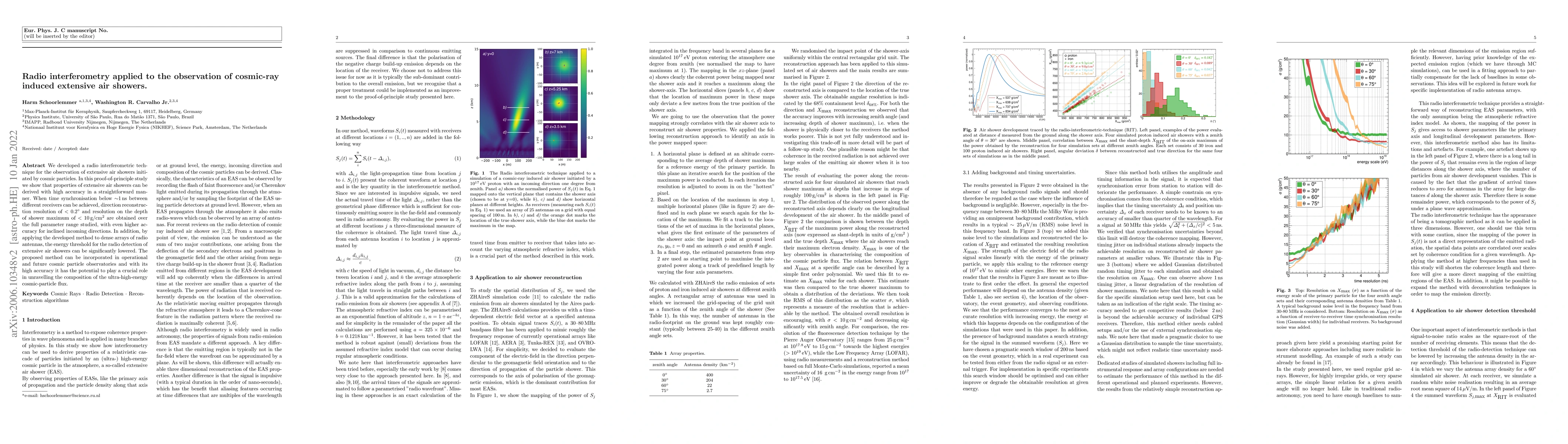 This paper presents a radio interferometric technique for observing extensive air showers caused by cosmic rays, demonstrating high accuracy in properties derivation. The method achieves sub-degree direction reconstruction and sub-10 g/cm$^2$ resolution on shower maximum depth, with potential for lower energy detection thresholds in dense antenna arrays.