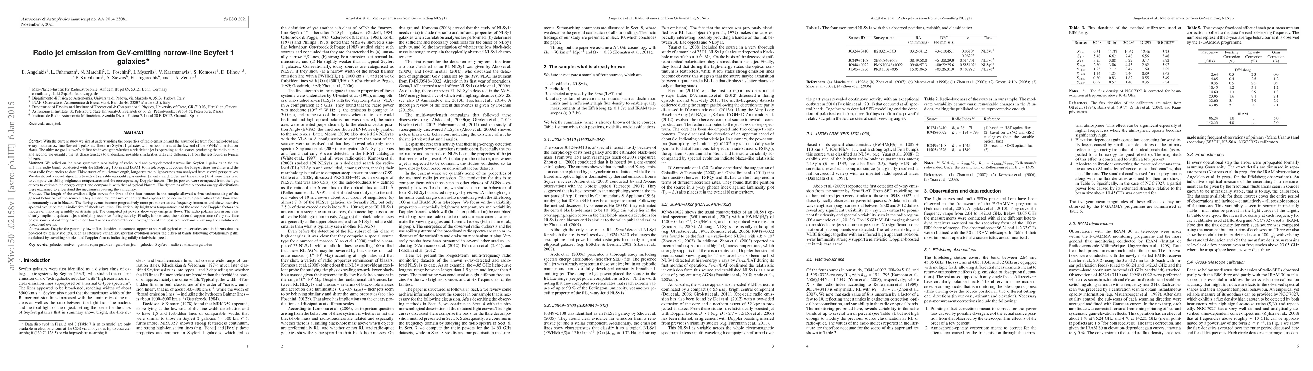 We studied the radio emission from four radio-loud and gamma-ray-loud narrow-line Seyfert 1 galaxies. The goal was to investigate whether a relativistic jet is operating at the source, and quantify its characteristics. We relied on the most systematic monitoring of such system in the cm and mm radio bands which is conducted with the Effelsberg 100 m and IRAM 30 m telescopes and covers the longest time-baselines and the most radio frequencies to date. We extract variability parameters and compute variability brightness temperatures and Doppler factors. The jet powers were computed from the light curves to estimate the energy output. The dynamics of radio spectral energy distributions were examined to understand the mechanism causing the variability. All the sources display intensive variability that occurs at a pace faster than what is commonly seen in blazars. The flaring events show intensive spectral evolution indicative of shock evolution. The brightness temperatures and Doppler factors are moderate, implying a mildly relativistic jet. The computed jet powers show very energetic flows. The radio polarisation in one case clearly implies a quiescent jet underlying the recursive flaring activity. Despite the generally lower flux densities, the sources appear to show all typical characteristics seen in blazars that are powered by relativistic jets.