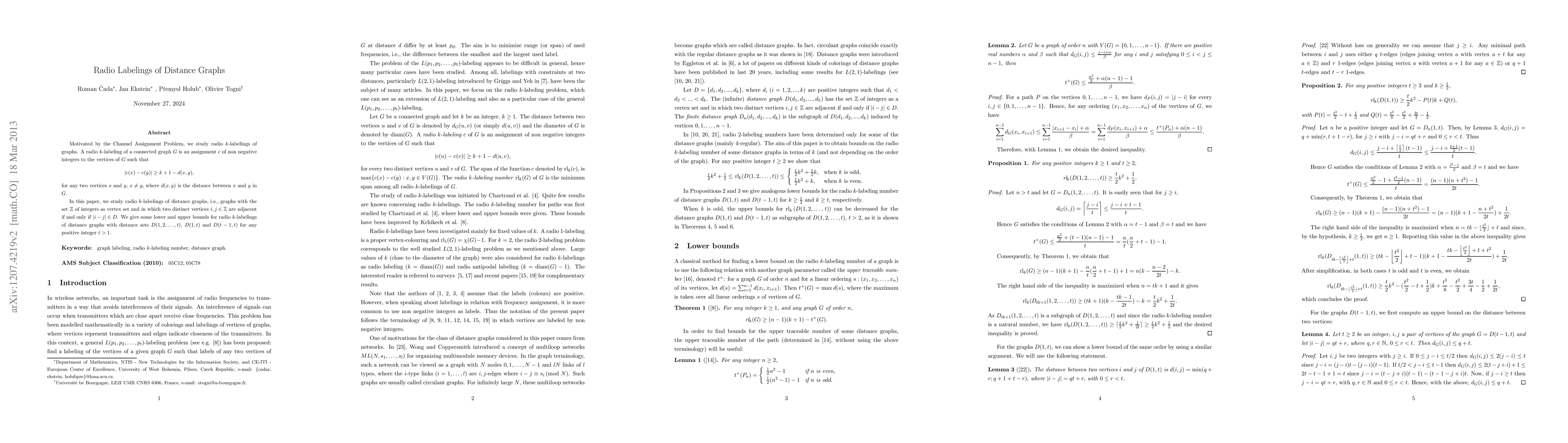 Researchers studied radio $k$-labelings of distance graphs, which assign non-negative integers to vertices such that the difference between labels is at least $k+1$ more than the distance between them, aiming to understand the properties of these labelings.