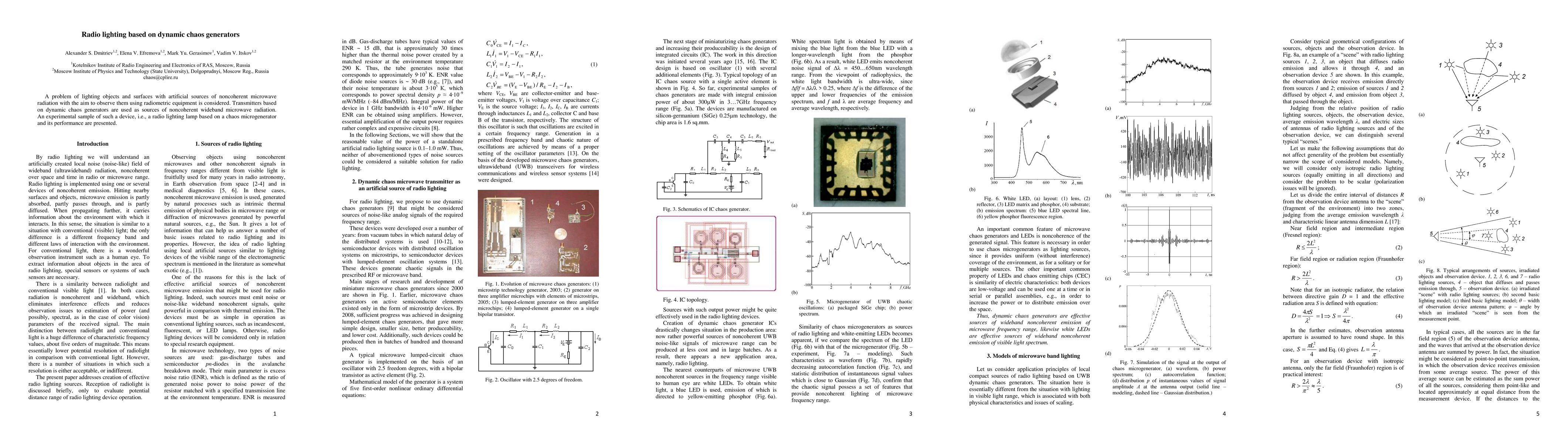 A problem of lighting objects and surfaces with artificial sources of noncoherent microwave radiation with the aim to observe them using radiometric equipment is considered. Transmitters based on dynamic chaos generators are used as sources of noncoherent wideband microwave radiation. An experimental sample of such a device, i.e., a radio lighting lamp based on a chaos microgenerator and its performance are presented.