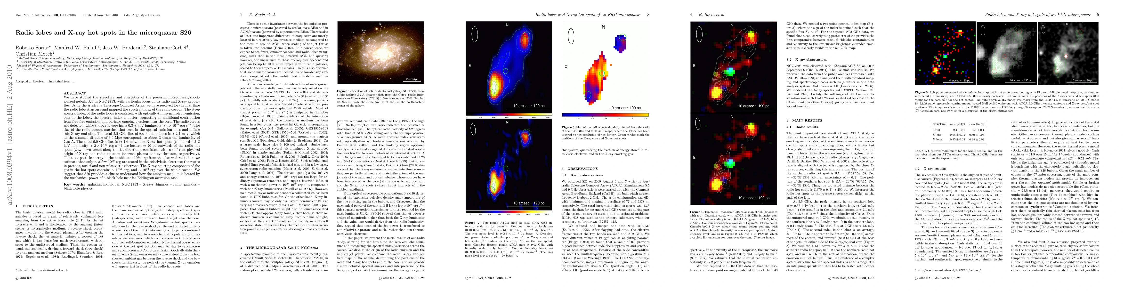This paper investigates the radio and X-ray emissions of the microquasar S26 in NGC 7793, revealing distinct radio lobe structures and X-ray hot spots, suggesting different origins for radio synchrotron and X-ray thermal emissions. The study estimates the total particle energy in the bubble to be ~10^{53} erg, with most energy in protons and non-relativistic electrons.
