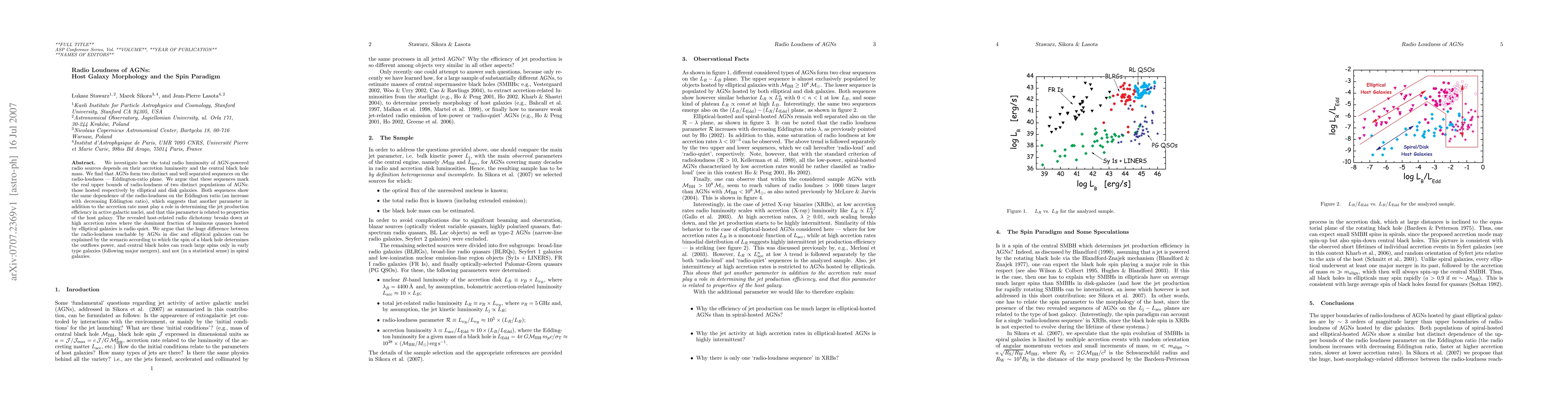 We investigate how the total radio luminosity of AGN-powered radio sources depends on their accretion luminosity and the central black hole mass. We find that AGNs form two distinct and well separated sequences on the radio-loudness - Eddington-ratio plane. We argue that these sequences mark the real upper bounds of radio-loudness of two distinct populations of AGNs: those hosted respectively by elliptical and disk galaxies. Both sequences show the same dependence of the radio-loudness on the Eddington ratio (an increase with decreasing Eddington ratio), which suggests that another parameter in addition to the accretion rate must play a role in determining the jet production efficiency in active galactic nuclei, and that this parameter is related to properties of the host galaxy. The revealed host-related radio dichotomy breaks down at high accretion rates where the dominant fraction of luminous quasars hosted by elliptical galaxies is radio quiet. We argue that the huge difference between the radio-loudness reachable by AGNs in disc and elliptical galaxies can be explained by the scenario according to which the spin of a black hole determines the outflow's power, and central black holes can reach large spins only in early type galaxies (following major mergers), and not (in a statistical sense) in spiral galaxies.