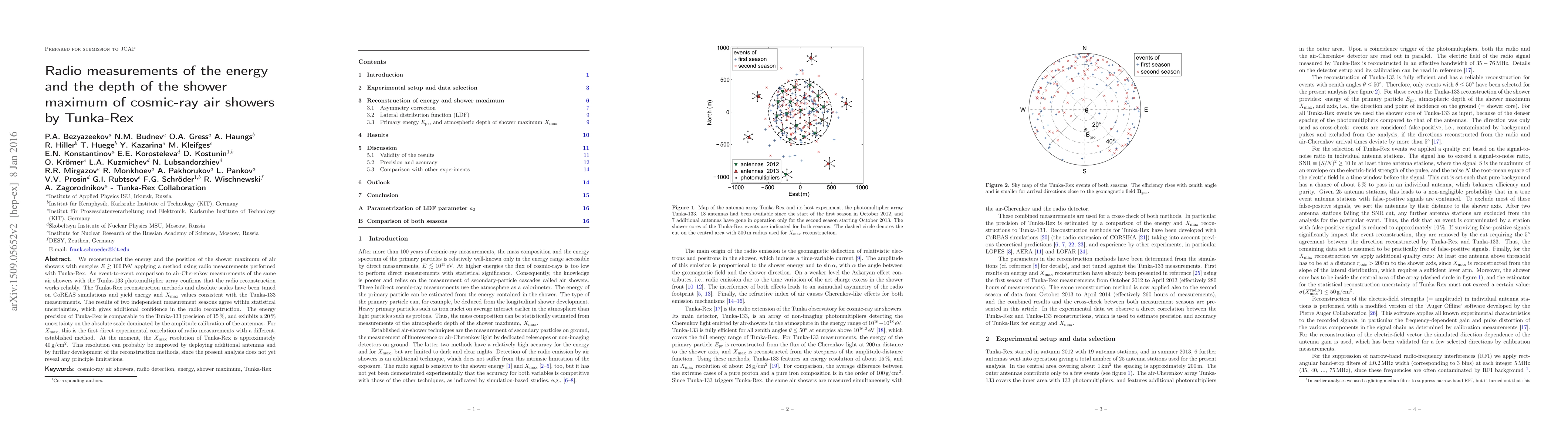 Researchers used radio measurements to reconstruct the energy and depth of cosmic-ray air showers with energies above 100 PeV, achieving precision comparable to existing methods and a direct correlation with established Cherenkov measurements.
