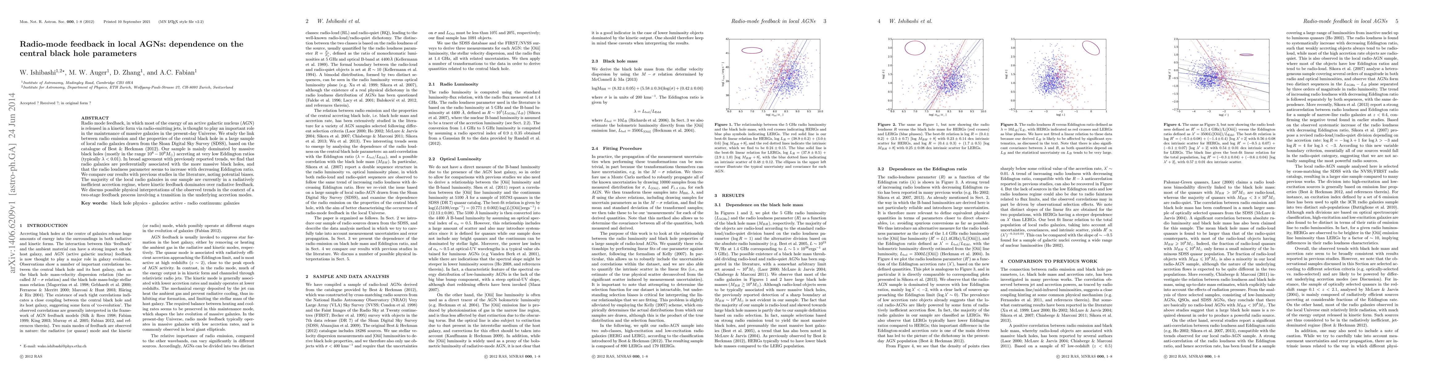 Radio mode feedback, in which most of the energy of an active galactic nucleus (AGN) is released in a kinetic form via radio-emitting jets, is thought to play an important role in the maintenance of massive galaxies in the present-day Universe. We study the link between radio emission and the properties of the central black hole in a large sample of local radio galaxies drawn from the Sloan Digital Sky Survey (SDSS), based on the catalogue of Best and Heckman (2012). Our sample is mainly dominated by massive black holes (mostly in the range $10^8-10^9 M_{\odot}$) accreting at very low Eddington ratios (typically $\lambda < 0.01$). In broad agreement with previously reported trends, we find that radio galaxies are preferentially associated with the more massive black holes, and that the radio loudness parameter seems to increase with decreasing Eddington ratio. We compare our results with previous studies in the literature, noting potential biases. The majority of the local radio galaxies in our sample are currently in a radiatively inefficient accretion regime, where kinetic feedback dominates over radiative feedback. We discuss possible physical interpretations of the observed trends in the context of a two-stage feedback process involving a transition in the underlying accretion modes.