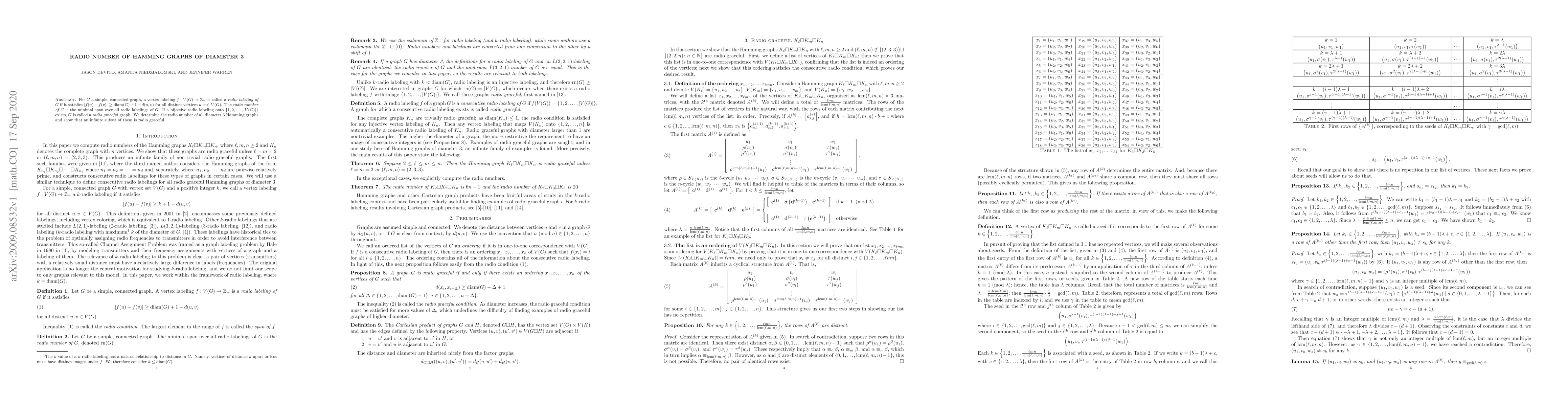 This paper determines the radio number for all diameter 3 Hamming graphs and proves that an infinite subset of these graphs is radio graceful, meaning they can be bijectively radio labeled onto the set $\{1,2,...,|V(G)|\}$.