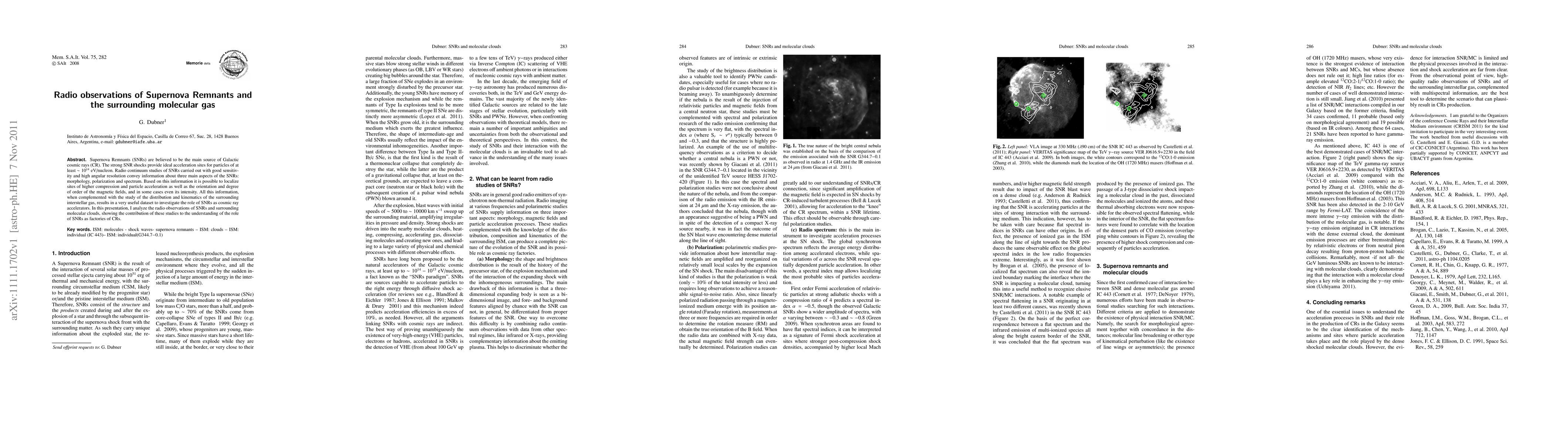 This research paper analyzes radio observations of Supernova Remnants to understand their role in accelerating cosmic rays. It provides new insights into the morphology, polarization, and spectrum of SNRs and their relationship with surrounding molecular gas.