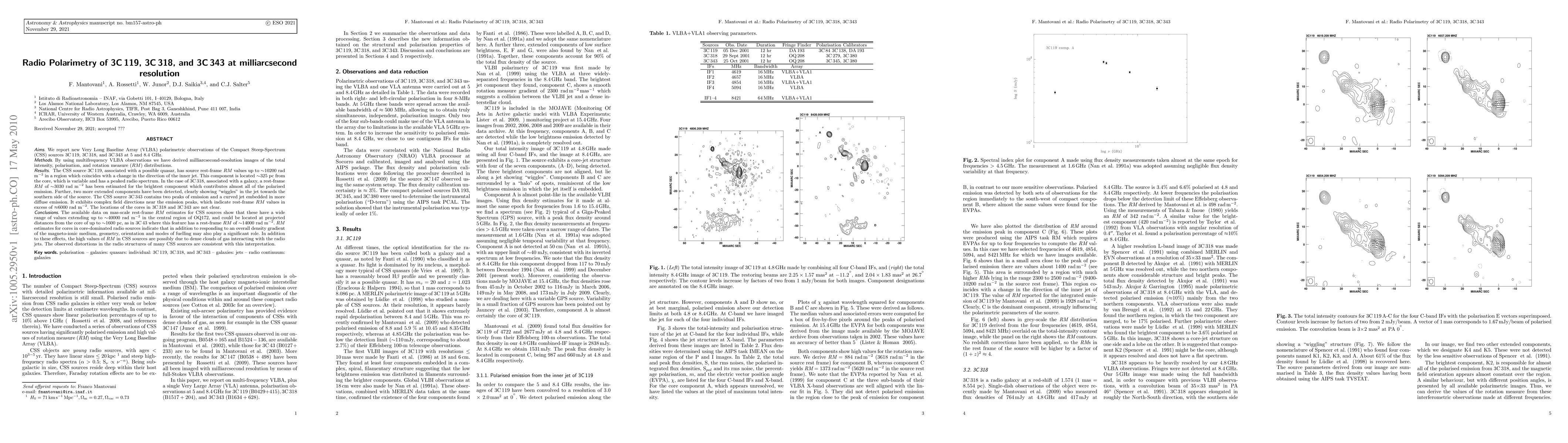 This paper reports VLBA polarimetric observations of compact steep-spectrum (CSS) radio sources 3C119, 3C318, and 3C343, revealing significant Faraday rotation measures (RM) and complex jet structures, with 3C119 showing RM up to ~10200 rad/m² near a jet direction change, and 3C343 exhibiting RM values exceeding ~6000 rad/m² near emission peaks.