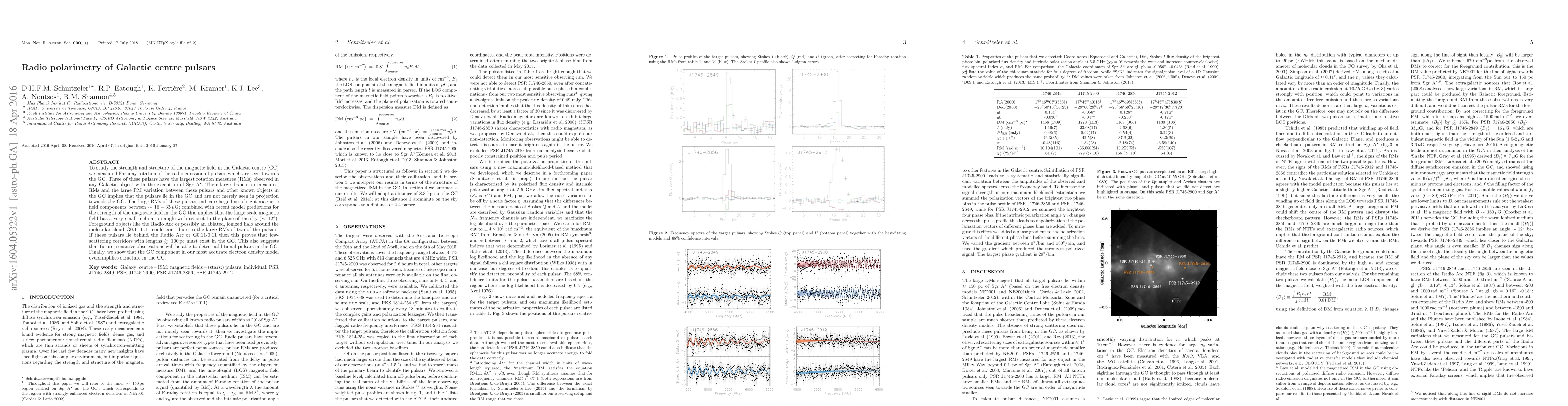 This study measures the Faraday rotation of pulsars near the Galactic centre, revealing large rotation measures indicative of significant line-of-sight magnetic fields (~16-33 microgauss). The findings suggest a small inclination angle for the large-scale magnetic field and imply the existence of low-scattering corridors in the Galactic centre.