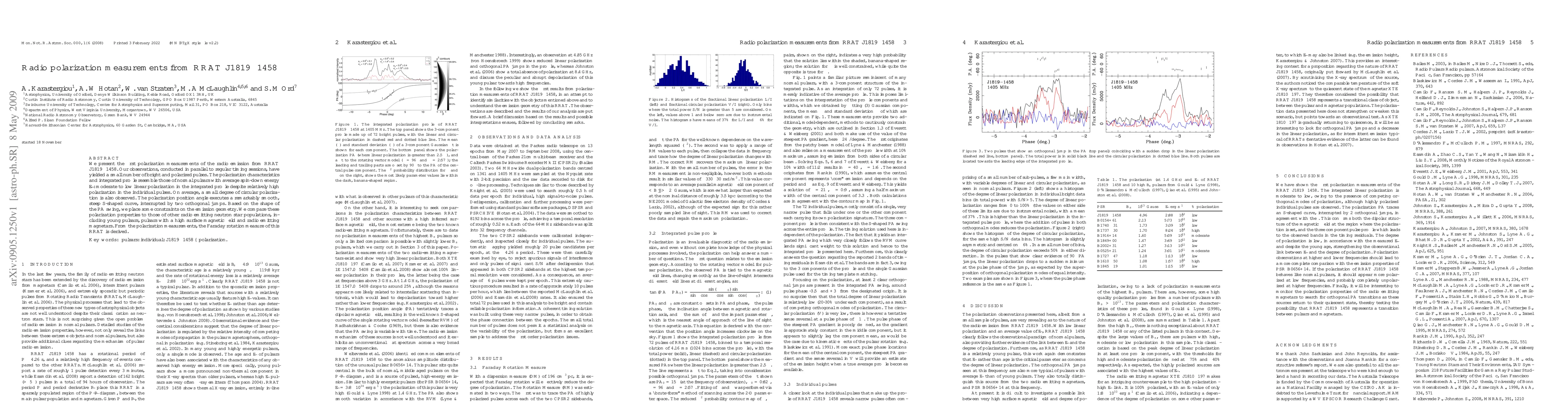 This paper reports the first polarization measurements of the radio emission from RRAT J1819-1458, revealing moderate to low linear polarization in the integrated profile and a small degree of circular polarization. The smooth S-shaped curve of the polarization position angle suggests constraints on the emission geometry and compares these properties to other neutron star populations.