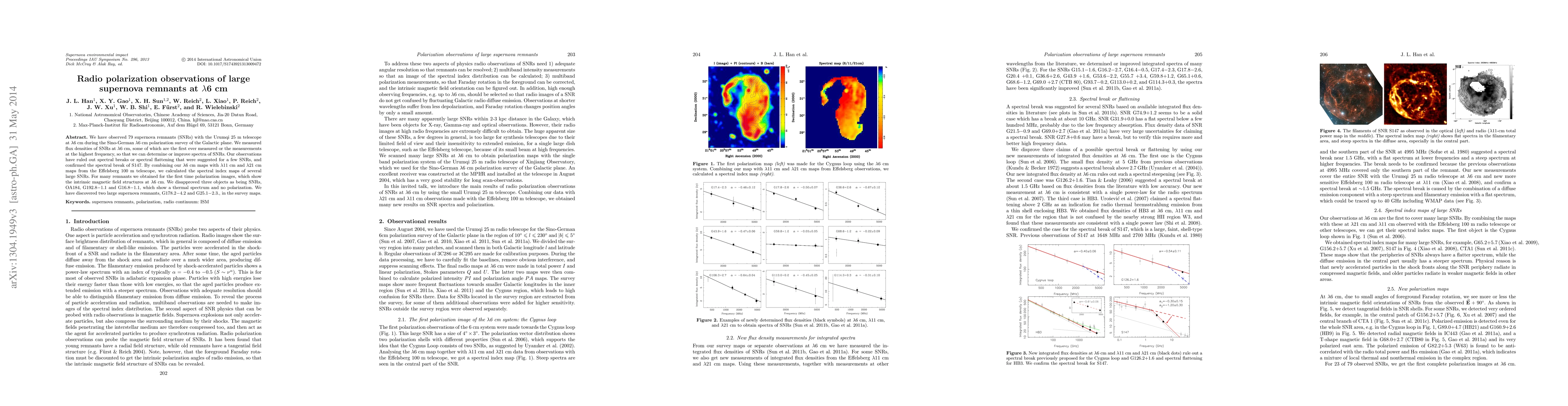 This study observed 79 supernova remnants (SNRs) using the Urumqi 25m telescope at 6cm, providing new flux density measurements and polarization images. The research disproved three objects as SNRs and discovered two new large SNRs, while confirming spectral breaks and ruling out previously suggested spectral anomalies.