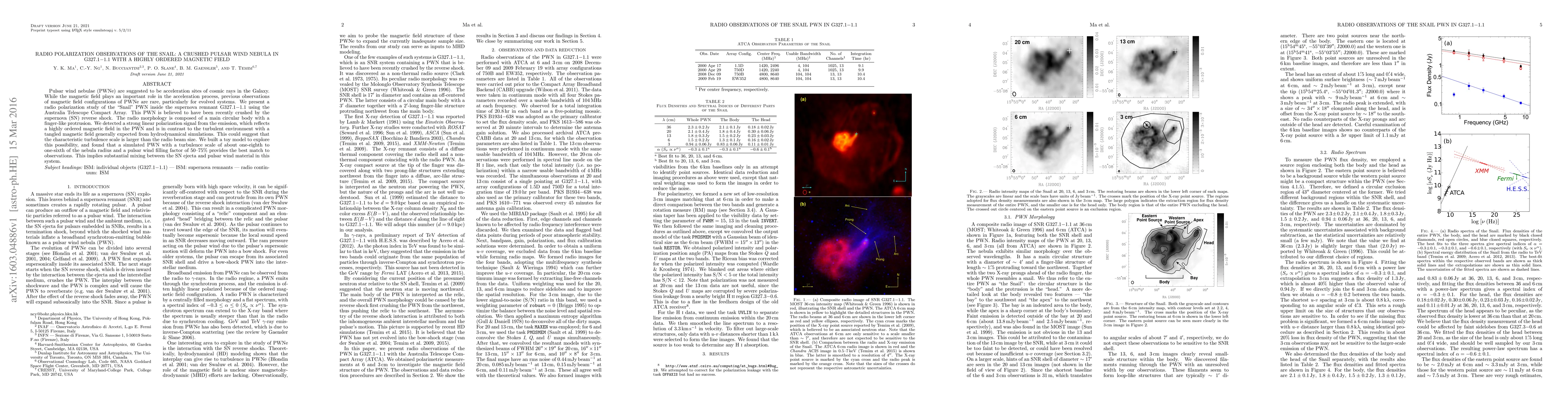 Pulsar wind nebulae (PWNe) are suggested to be acceleration sites of cosmic rays in the Galaxy. While the magnetic field plays an important role in the acceleration process, previous observations of magnetic field configurations of PWNe are rare, particularly for evolved systems. We present a radio polarization study of the "Snail" PWN inside the supernova remnant G327.1-1.1 using the Australia Telescope Compact Array. This PWN is believed to have been recently crushed by the supernova (SN) reverse shock. The radio morphology is composed of a main circular body with a finger-like protrusion. We detected a strong linear polarization signal from the emission, which reflects a highly ordered magnetic field in the PWN and is in contrast to the turbulent environment with a tangled magnetic field generally expected from hydrodynamical simulations. This could suggest that the characteristic turbulence scale is larger than the radio beam size. We built a toy model to explore this possibility, and found that a simulated PWN with a turbulence scale of about one-eighth to one-sixth of the nebula radius and a pulsar wind filling factor of 50--75% provides the best match to observations. This implies substantial mixing between the SN ejecta and pulsar wind material in this system.