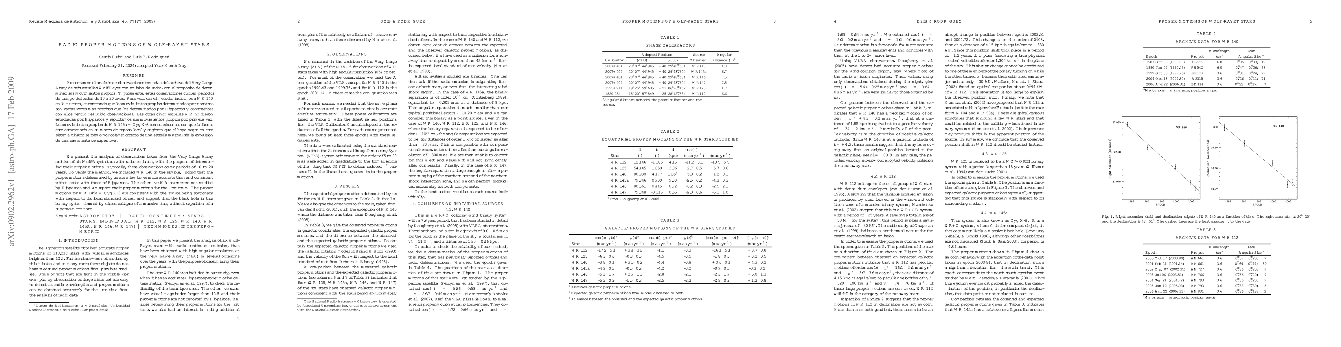 This study analyzes radio observations of six Wolf-Rayet stars to determine their proper motions over periods of 10 to 20 years, reporting the first proper motion measurements for five stars. The method's accuracy is verified by comparing results for WR 140 with Hipparcos data.
