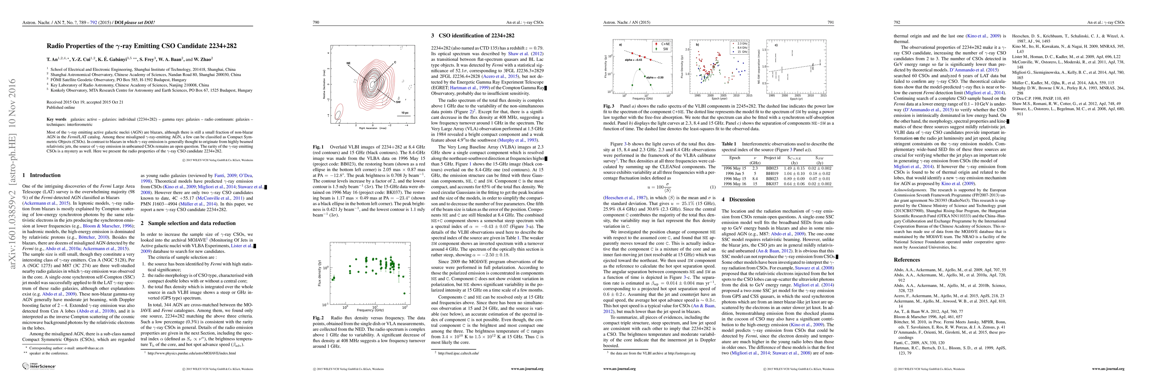 Most of the gamma-ray emitting active galactic nuclei (AGN) are blazars, although there is still a small fraction of non-blazar AGN in the Fermi/LAT catalog. Among these misaligned gamma-ray-emitting AGN, a few can be classified as Compact Symmetric Objects (CSOs). In contrast to blazars in which gamma-ray emission is generally thought to originate from highly beamed relativistic jets, the source of gamma-ray emission in unbeamed CSOs remains an open question. The rarity of the gamma-ray emitting CSOs is a mystery as well. Here we present the radio properties of the gamma-ray CSO candidate 2234+282.