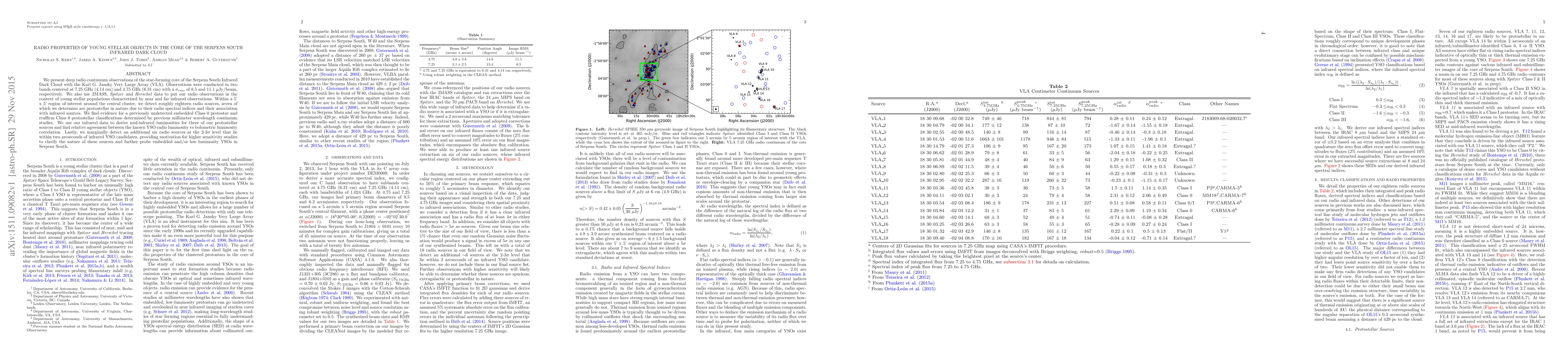 This study uses deep radio observations from the VLA to identify and classify young stellar objects in the Serpens South Infrared Dark Cloud, detecting 18 radio sources, 7 of which are protostellar. The research confirms an embedded Class 0 protostar and suggests further investigation is needed for six additional marginally detected sources near infrared YSO candidates.