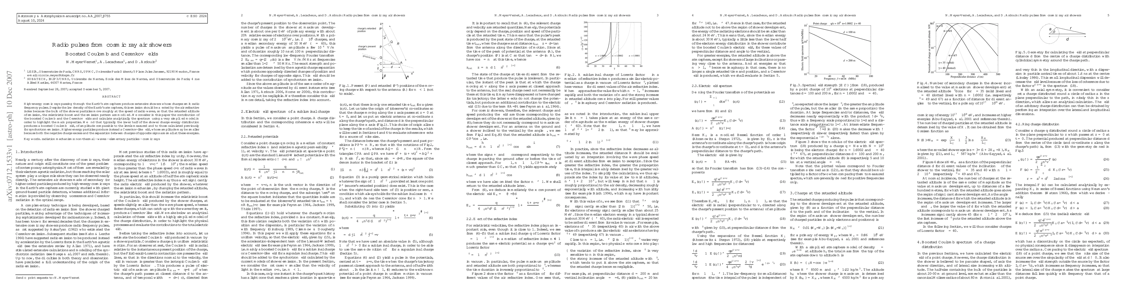 This paper analyzes radio pulses from cosmic ray air showers, focusing on boosted Coulomb and Cherenkov fields. It finds that lower energy shower charges primarily generate a boosted Coulomb field, comparable to previous synchrotron emission measurements. Higher energy charges produce a Cherenkov-like field, with potentially smaller amplitude due to reduced charge excess and separation.