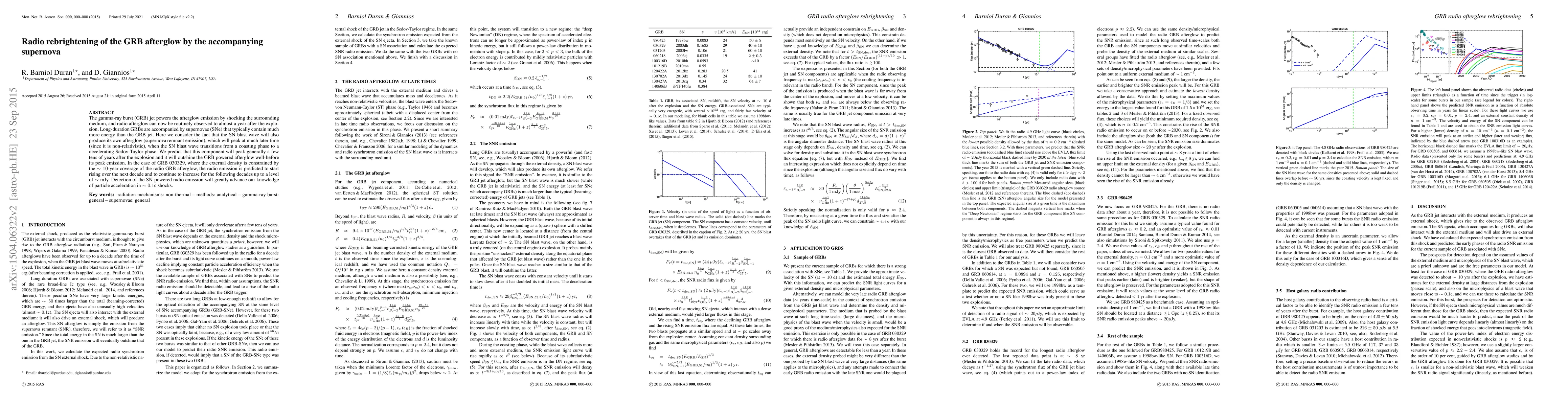The gamma-ray burst (GRB) jet powers the afterglow emission by shocking the surrounding medium, and radio afterglow can now be routinely observed to almost a year after the explosion. Long-duration GRBs are accompanied by supernovae (SNe) that typically contain much more energy than the GRB jet. Here we consider the fact that the SN blast wave will also produce its own afterglow (supernova remnant emission), which will peak at much later time (since it is non-relativistic), when the SN blast wave transitions from a coasting phase to a decelerating Sedov-Taylor phase. We predict that this component will peak generally a few tens of years after the explosion and it will outshine the GRB powered afterglow well-before its peak emission. In the case of GRB 030329, where the external density is constrained by the $\sim 10$-year coverage of the radio GRB afterglow, the radio emission is predicted to start rising over the next decade and to continue to increase for the following decades up to a level of $\sim$ mJy. Detection of the SN-powered radio emission will greatly advance our knowledge of particle acceleration in $ \sim 0.1$c shocks.