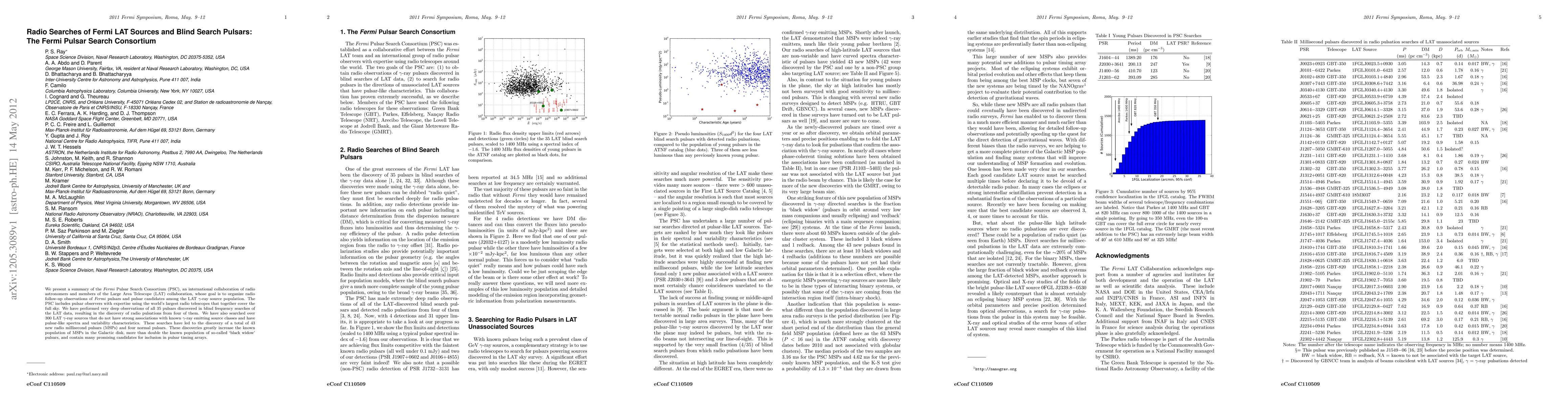 The Fermi Pulsar Search Consortium conducted deep radio observations of Fermi LAT sources, discovering 43 new millisecond pulsars and four normal pulsars, significantly expanding the known population of these celestial objects. These findings include notable discoveries of `black widow' pulsars and candidates for pulsar timing arrays.