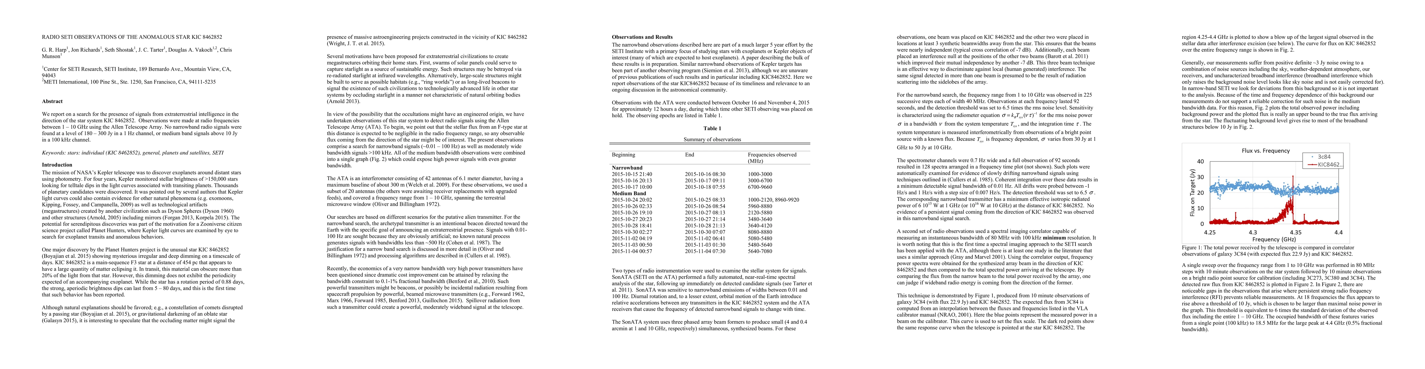 This study utilized the Allen Telescope Array to search for radio signals from extraterrestrial intelligence directed towards the star KIC 8462852, but no narrowband or medium band signals were detected, ruling out certain types of communication at specified levels.
