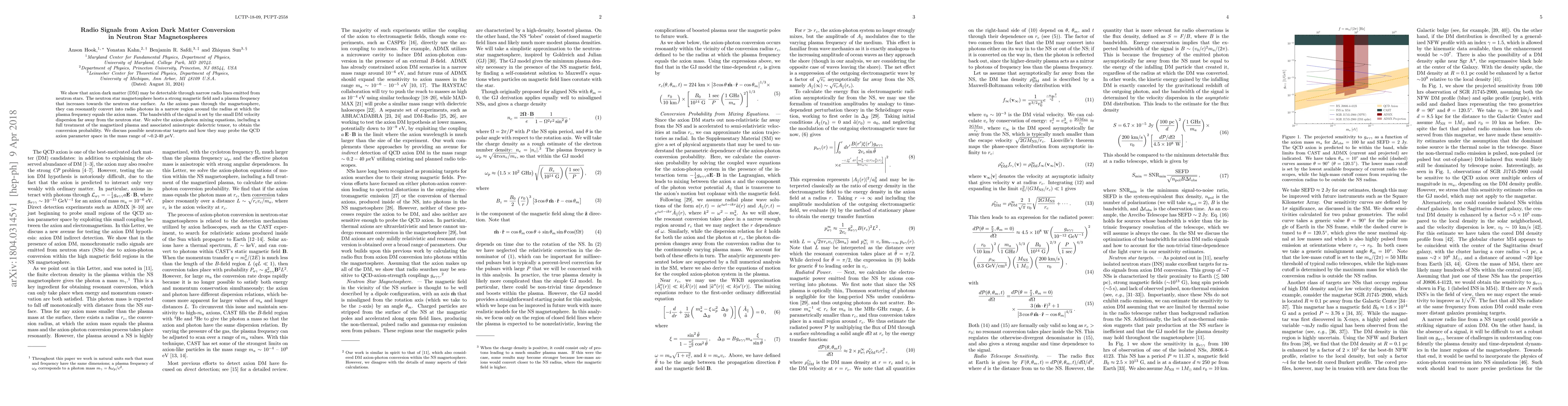 This paper demonstrates the potential for detecting axion dark matter via narrow radio signals emitted from neutron star magnetospheres, where axions convert into radio photons due to resonant interactions. The study provides a detailed analysis of the conversion probability, considering the magnetized plasma and anisotropic dielectric tensor, and identifies neutron stars as promising targets for probing the QCD axion parameter space.