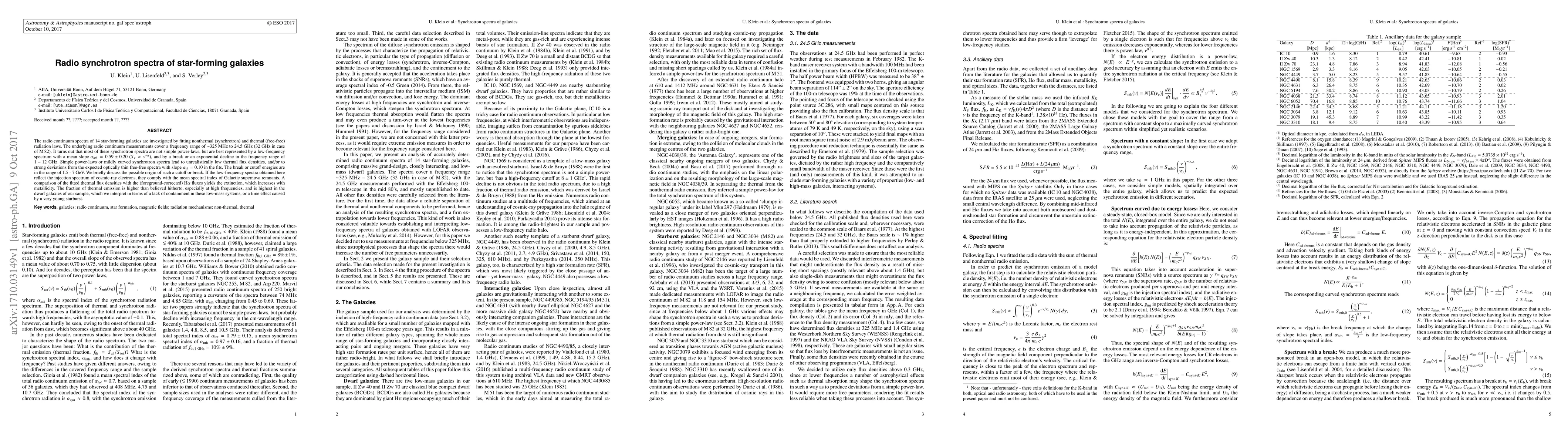 Researchers studied 14 star-forming galaxies' radio spectra and found most have a complex synchrotron spectrum with a break or exponential decline, deviating from simple power-laws, indicating the injection of cosmic-ray electrons.