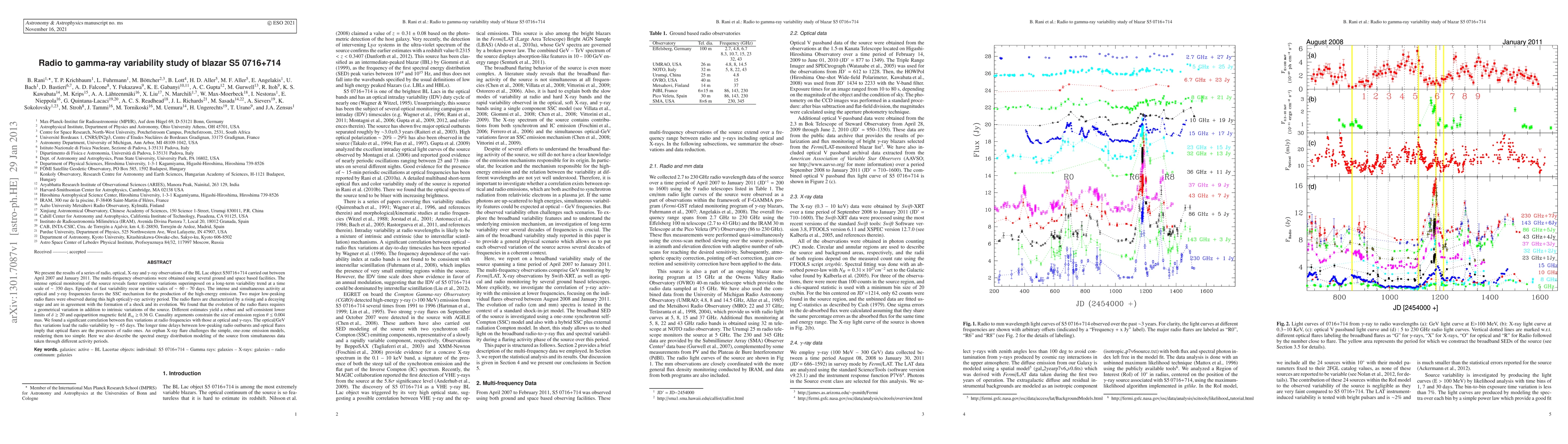 We present the results of a series of radio, optical, X-ray and gamma-ray observations of the BL Lac object S50716+714 carried out between April 2007 and January 2011. The multi-frequency observations were obtained using several ground and space based facilities. The intense optical monitoring of the source reveals faster repetitive variations superimposed on a long-term variability trend at a time scale of ~350 days. Episodes of fast variability recur on time scales of ~ 60-70 days. The intense and simultaneous activity at optical and gamma-ray frequencies favors the SSC mechanism for the production of the high-energy emission. Two major low-peaking radio flares were observed during this high optical/gamma-ray activity period. The radio flares are characterized by a rising and a decaying stage and are in agreement with the formation of a shock and its evolution. We found that the evolution of the radio flares requires a geometrical variation in addition to intrinsic variations of the source. Different estimates yield a robust and self-consistent lower limits of \delta > 20 and equipartition magnetic field B_eq > 0.36 G. Causality arguments constrain the size of emission region \theta < 0.004 mas. We found a significant correlation between flux variations at radio frequencies with those at optical and gamma-rays. The optical/GeV flux variations lead the radio variability by ~65 days. The longer time delays between low-peaking radio outbursts and optical flares imply that optical flares are the precursors of radio ones. An orphan X-ray flare challenges the simple, one-zone emission models, rendering them too simple. Here we also describe the spectral energy distribution modeling of the source from simultaneous data taken through different activity periods.