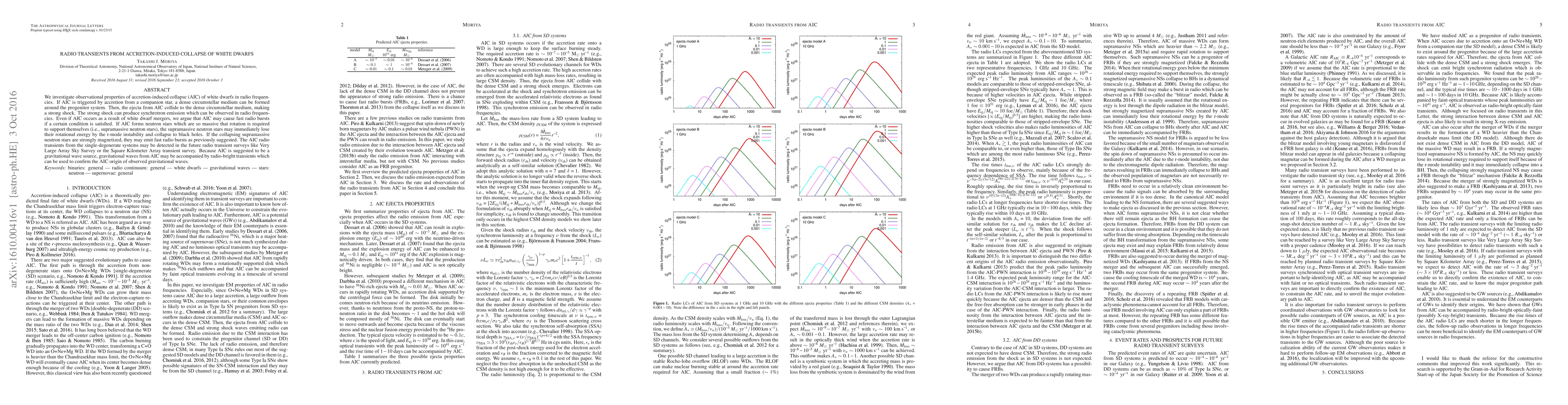 This paper explores the radio transient emissions from the accretion-induced collapse (AIC) of white dwarfs, suggesting that strong shocks from ejecta collisions with dense circumstellar medium can produce observable synchrotron emission. It also posits that AIC may generate fast radio bursts under specific conditions.