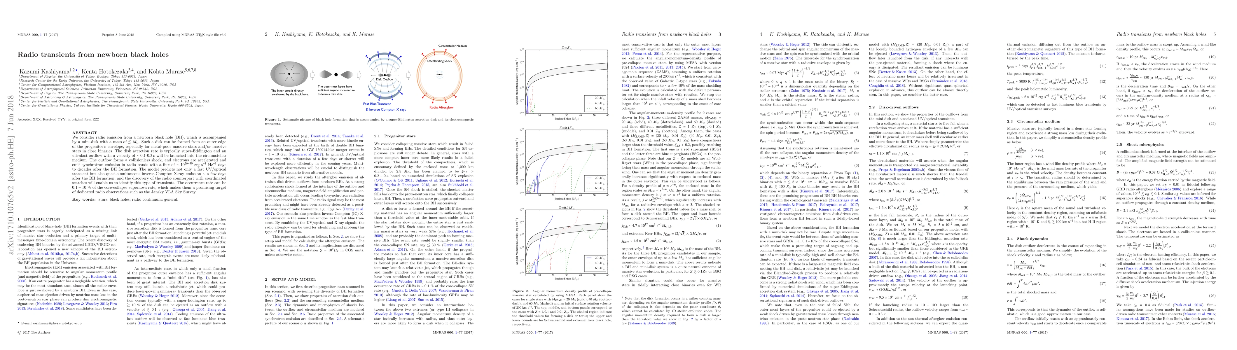 We consider radio emission from a newborn black hole (BH), which is accompanied by a mini-disk with a mass of $\lesssim M_\odot$. Such a disk can be formed from an outer edge of the progenitor's envelope, especially for metal-poor massive stars and/or massive stars in close binaries. The disk accretion rate is typically super-Eddington and an ultrafast outflow with a velocity of $\sim 0.1\mbox{-}0.3\,c$ will be launched into the circumstellar medium. The outflow forms a collisionless shock, and electrons are accelerated and emit synchrotron emission in radio bands with a flux of $\sim 10^{26-30} \ \rm erg \ s^{-1} \ Hz^{-1}$ days to decades after the BH formation. The model predicts not only a fast UV/optical transient but also quasi-simultaneous inverse-Compton X-ray emission $\sim$ a few days after the BH formation, and the discovery of the radio counterpart with coordinated searches will enable us to identify this type of transients. The occurrence rate can be $0.1-10 \ \%$ of the core-collapse supernova rate, which makes them a promising target of dedicated radio observations such as the Jansky VLA Sky Survey.