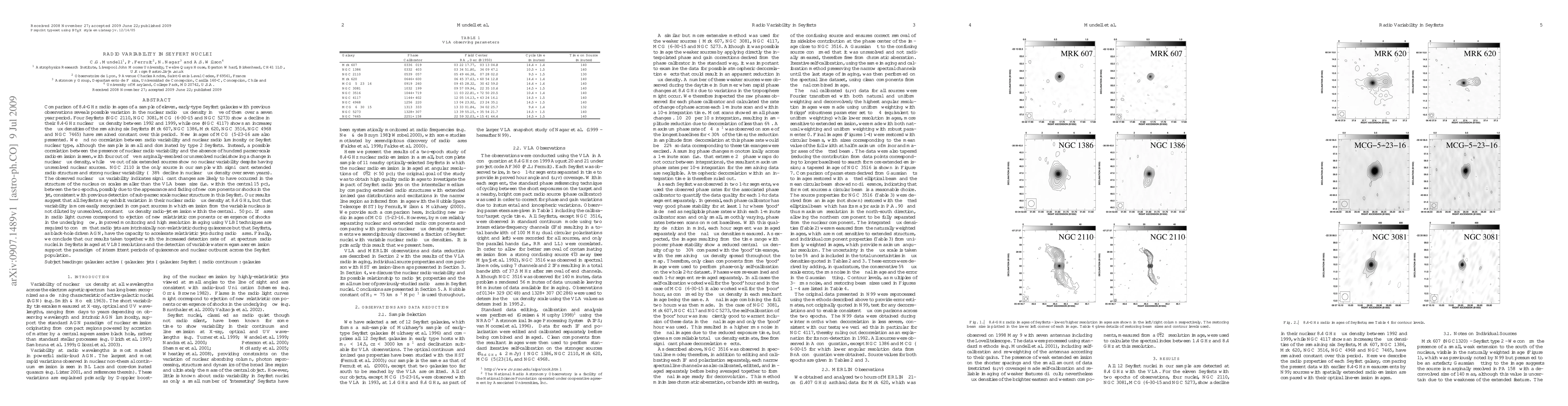 Comparison of 8.4-GHz radio images of a sample of 11 early-type Seyfert galaxies with previous observations reveals possible variation in the nuclear radio flux density in 5 of them over a 7-yr period. We find no correlation between radio variability and nuclear radio luminosity or Seyfert nuclear type, although the sample is small and dominated by type 2 Seyferts. Instead, a possible correlation between the presence of nuclear radio variability and the absence of ~100-pc-scale radio emission is seen. NGC2110 is the only source with significant extended radio structure and strong nuclear variability (>38% nuclear decline over seven years). Our results suggest that all Seyferts may exhibit variation in their nuclear radio flux density at 8.4 GHz, but that variability is more easily recognised in compact sources in which emission from the variable nucleus is not diluted by unresolved, constant flux density radio-jet emission within the central ~50 pc. If flares in radio light curves correspond to ejection of new relativistic components or emergence of shocks in the underlying flow, we suggest that radio jets may be intrinsically non-relativistic during quiescence, but that Seyferts, as black-hole driven AGN, have the capacity to accelerate relativistic jets during radio flares. Taken together with the increased detection rate of flat spectrum radio nuclei in Seyferts imaged at VLBI resolutions and the detection of variable water megamaser emission, our results support the paradigm of intermittent periods of quiescence and nuclear outburst across the Seyfert population. (Abridged).