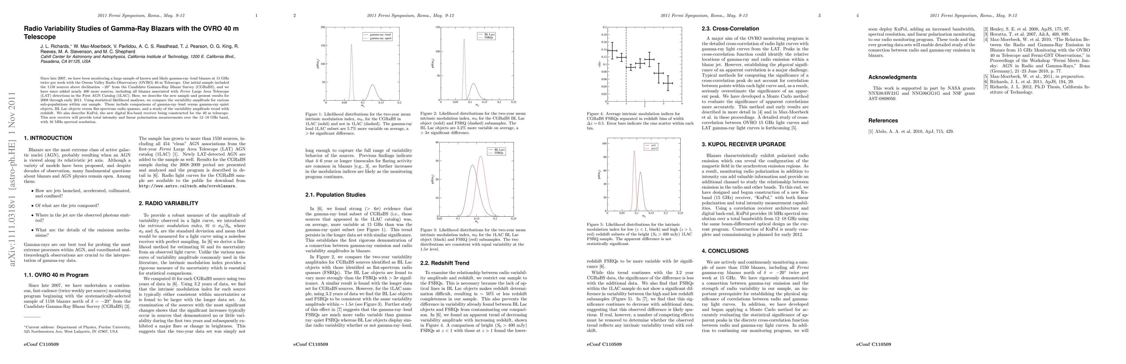 Researchers used the OVRO 40 m Telescope to monitor gamma-ray blazars for variability, finding differences in variability between gamma-ray-loud and quiet objects, as well as a trend with redshift.