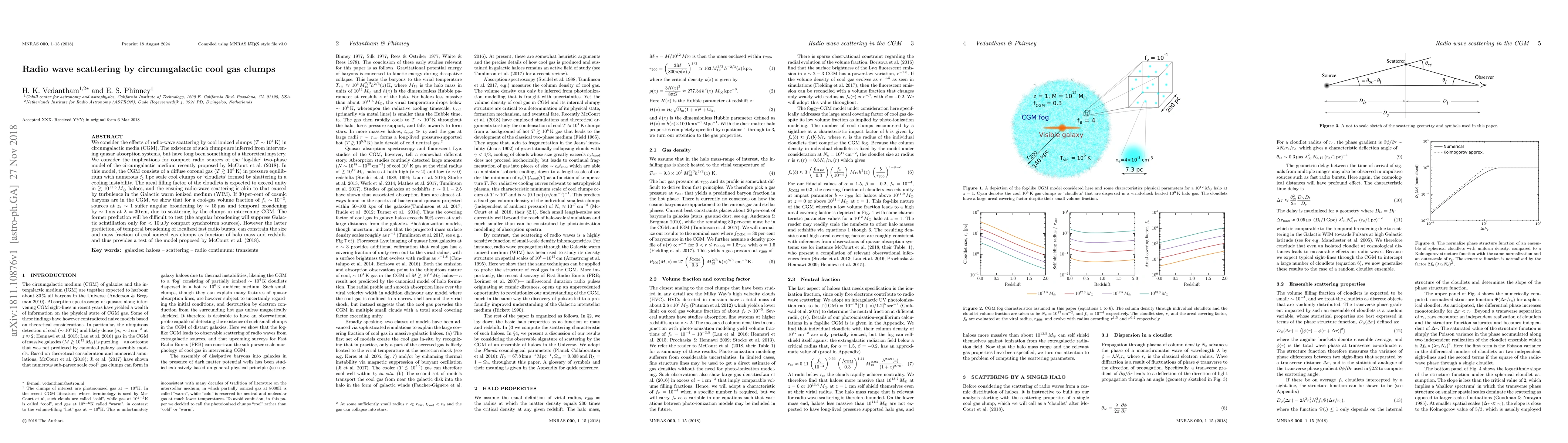 This paper investigates radio-wave scattering by cool ionized gas clumps in the circumgalactic medium, proposing that these clumps cause significant scattering effects on compact radio sources. The study suggests that temporal broadening of fast radio bursts can be used to test the proposed two-phase model of the circumgalactic medium, providing insights into the size and mass fraction of these cool gas clumps.