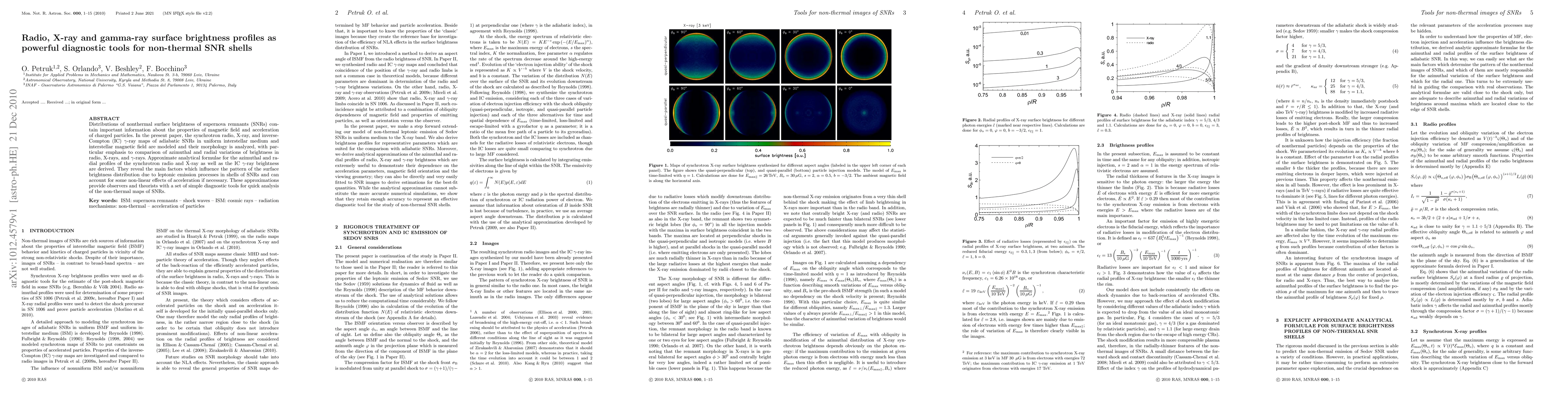 This paper models synchrotron radio, X-ray, and inverse-Compton gamma-ray brightness profiles of supernova remnants to analyze their morphology and derive analytical formulae for azimuthal and radial brightness variations. These tools provide insights into magnetic fields and particle acceleration, offering diagnostic methods for interpreting non-thermal SNR shells.