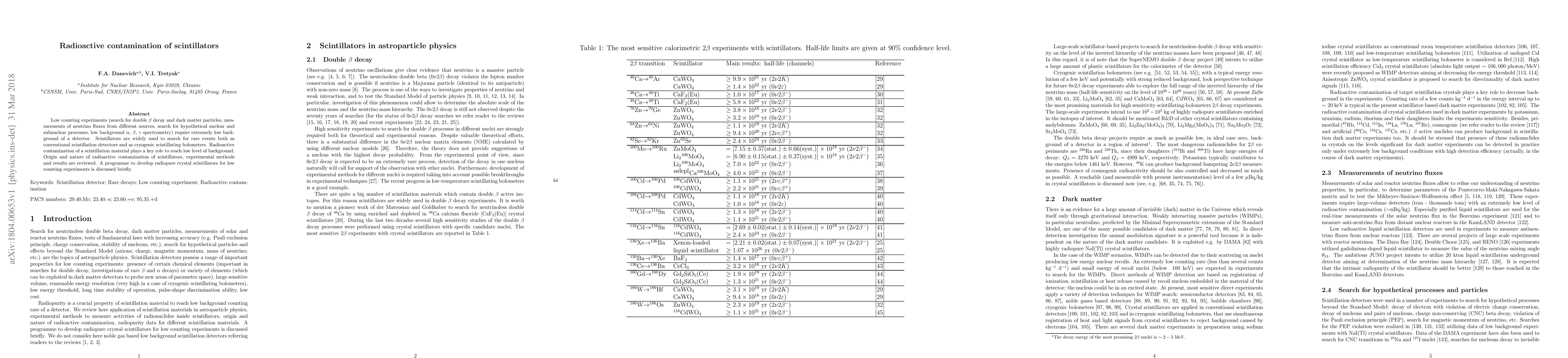 Low counting experiments (search for double $\beta$ decay and dark matter particles, measurements of neutrino fluxes from different sources, search for hypothetical nuclear and subnuclear processes, low background $\alpha$, $\beta$, $\gamma$ spectrometry) require extremely low background of a detector. Scintillators are widely used to search for rare events both as conventional scintillation detectors and as cryogenic scintillating bolometers. Radioactive contamination of a scintillation material plays a key role to reach low level of background. Origin and nature of radioactive contamination of scintillators, experimental methods and results are reviewed. A programme to develop radiopure crystal scintillators for low counting experiments is discussed briefly.