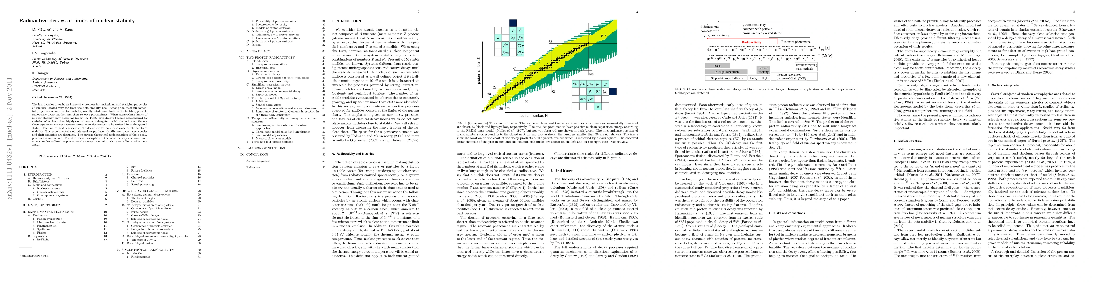 Researchers review the decay modes of radioactive nuclides near nuclear stability limits, including new emission processes and their detection methods. They also discuss the theoretical understanding of these complex decay processes, highlighting a detailed explanation of two-proton radioactivity.
