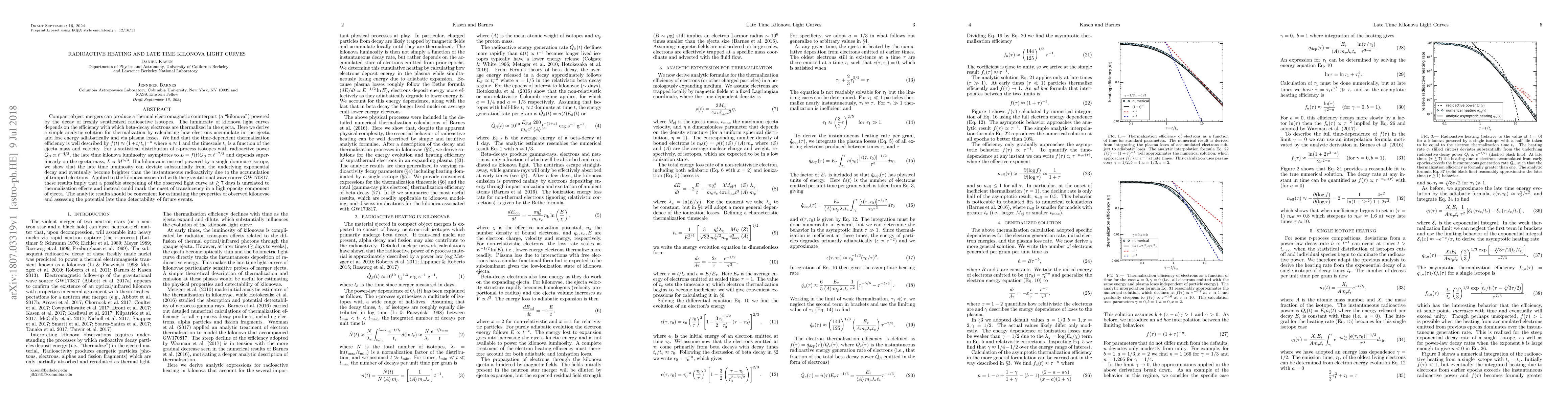 The paper derives analytic solutions for thermalization efficiency in kilonova light curves, considering both statistical distributions of r-process isotopes and single dominant isotopes.