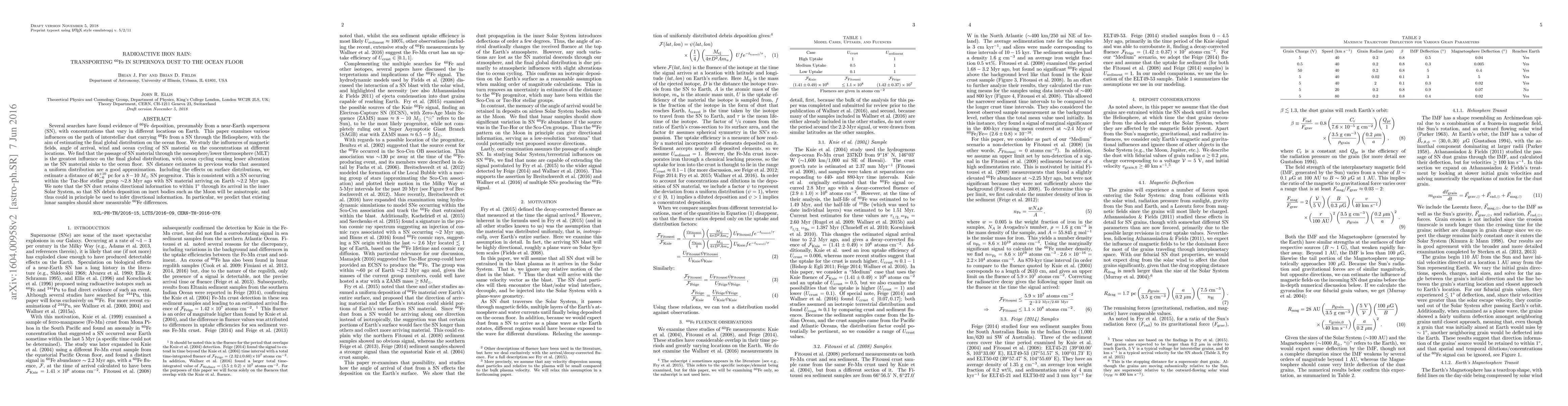 Several searches have found evidence of $^{60}$Fe deposition, presumably from a near-Earth supernova (SN), with concentrations that vary in different locations on Earth. This paper examines various influences on the path of interstellar dust carrying $^{60}$Fe from a SN through the heliosphere, with the aim of estimating the final global distribution on the ocean floor. We study the influences of magnetic fields, angle of arrival, wind and ocean cycling of SN material on the concentrations at different locations. We find that the passage of SN material through the mesosphere/lower thermosphere (MLT) is the greatest influence on the final global distribution, with ocean cycling causing lesser alteration as the SN material sinks to the ocean floor. SN distance estimates in previous works that assumed a uniform distribution are a good approximation. Including the effects on surface distributions, we estimate a distance of $46^{+10}_{-6}$ pc for a $8-10 \ M_{\odot}$ SN progenitor. This is consistent with a SN occurring within the Tuc-Hor stellar group $\sim$2.8 Myr ago with SN material arriving on Earth $\sim$2.2 Myr ago. We note that the SN dust retains directional information to within $1^{\circ}$ through its arrival in the inner Solar System, so that SN debris deposition on inert bodies such as the Moon will be anisotropic, and thus could in principle be used to infer directional information. In particular, we predict that existing lunar samples should show measurable $^{60}$Fe differences.