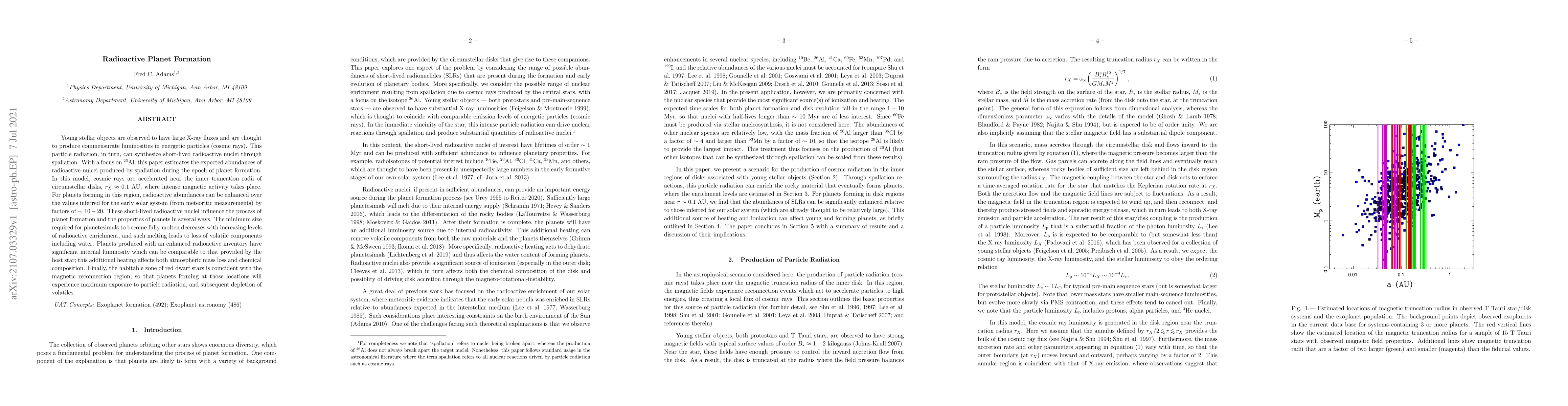 Young stellar objects are observed to have large X-ray fluxes and are thought to produce commensurate luminosities in energetic particles (cosmic rays). This particle radiation, in turn, can synthesize short-lived radioactive nuclei through spallation. With a focus on $^{26}$Al, this paper estimates the expected abundances of radioactive nulcei produced by spallation during the epoch of planet formation. In this model, cosmic rays are accelerated near the inner truncation radii of circumstellar disks, $r_{\scriptstyle X}\approx0.1$ AU, where intense magnetic activity takes place. For planets forming in this region, radioactive abundances can be enhanced over the values inferred for the early solar system (from meteoritic measurements) by factors of $\sim10-20$. These short-lived radioactive nuclei influence the process of planet formation and the properties of planets in several ways. The minimum size required for planetesimals to become fully molten decreases with increasing levels of radioactive enrichment, and such melting leads to loss of volatile components including water. Planets produced with an enhanced radioactive inventory have significant internal luminosity which can be comparable to that provided by the host star; this additional heating affects both atmospheric mass loss and chemical composition. Finally, the habitable zone of red dwarf stars is coincident with the magnetic reconnection region, so that planets forming at those locations will experience maximum exposure to particle radiation, and subsequent depletion of volatiles.