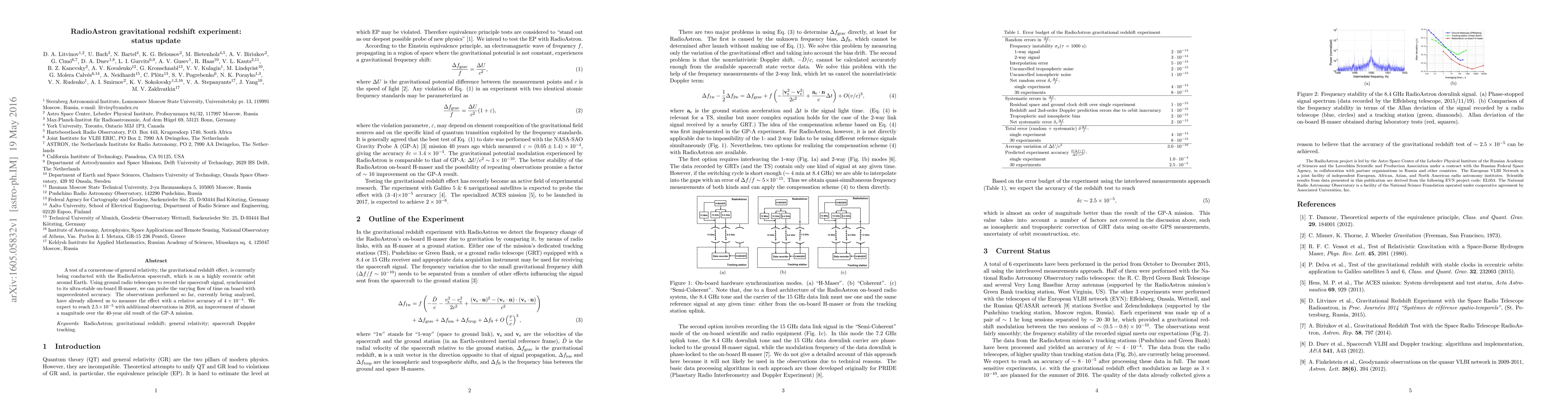 The RadioAstron spacecraft is testing the gravitational redshift effect, a key component of general relativity, achieving a current relative accuracy of $4\times10^{-4}$. Anticipated improvements to $2.5\times10^{-5}$ in 2016 promise a significant enhancement over previous measurements.