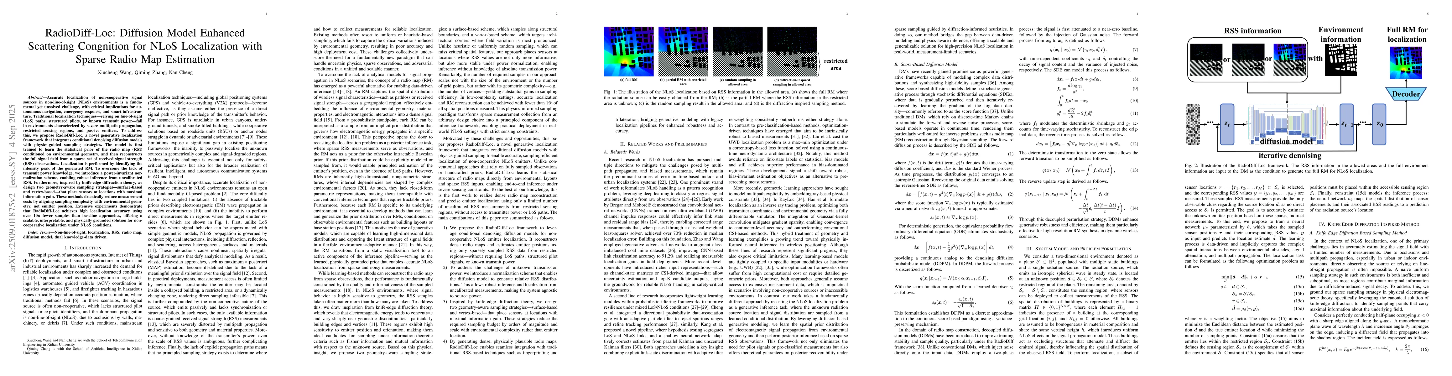 Accurate localization of non-cooperative signal sources in non-line-of-sight (NLoS) environments remains a critical challenge with a wide range of applications, including autonomous navigation, industrial automation, and emergency response. In such settings, traditional positioning techniques relying on line-of-sight (LoS) or cooperative signaling fail due to severe multipath propagation and unknown transmit power. This paper proposes a novel generative inference framework for NLoS localization based on conditional diffusion models. By leveraging the physical insight that diffracted electromagnetic energy concentrates near building edges, we develop a sampling strategy that collects sparse received signal strength (RSS) measurements at the geometric vertices of obstacles--locations that maximize Fisher information and mutual information with respect to the unknown source. To overcome the lack of known transmission power, we normalize all sampled RSS values relative to the maximum observed intensity, enabling the construction of a power-invariant radio map (RM). A conditional diffusion model is trained to reconstruct the full RM based on environmental layout and sparse RSS observations. Localization is then achieved by identifying the brightest point on the generated RM. Moreover, the proposed framework is compatible with existing RSS-based localization algorithms, enabling a dual-driven paradigm that fuses physical knowledge and data-driven inference for improved accuracy. Extensive theoretical analysis and empirical validation demonstrate that our approach achieves high localization accuracy with significantly reduced sampling cost, offering a scalable and physically grounded solution for non-cooperative NLoS emitter localization.