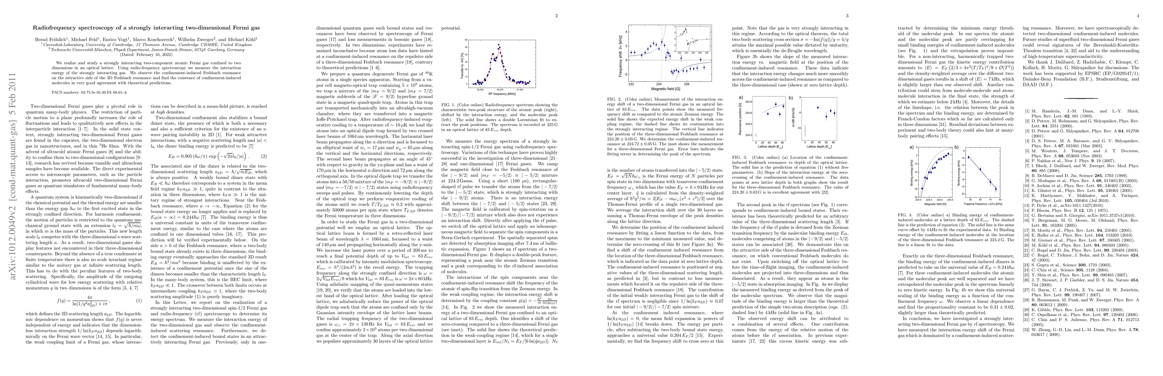 This study investigates a strongly interacting two-dimensional Fermi gas in an optical lattice, employing radiofrequency spectroscopy to measure interaction energies. The research confirms the presence of confinement-induced Feshbach resonance and molecules, aligning well with theoretical predictions.