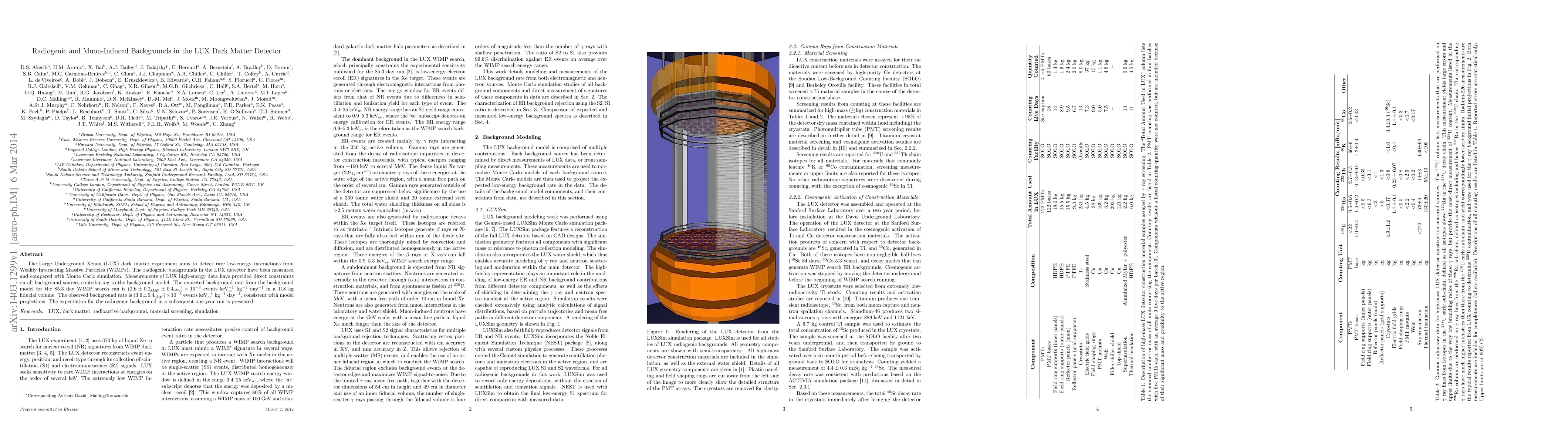 The LUX experiment measures radiogenic and muon-induced backgrounds to detect WIMPs, finding a background rate consistent with simulations. The expected background rate for an 85.3-day run is $(2.6\pm0.2_{\textrm{stat}}\pm0.4_{\textrm{sys}})\times10^{-3}$ events keV$^{-1}$ kg$^{-1}$ day$^{-1}$ in a 118 kg fiducial volume.