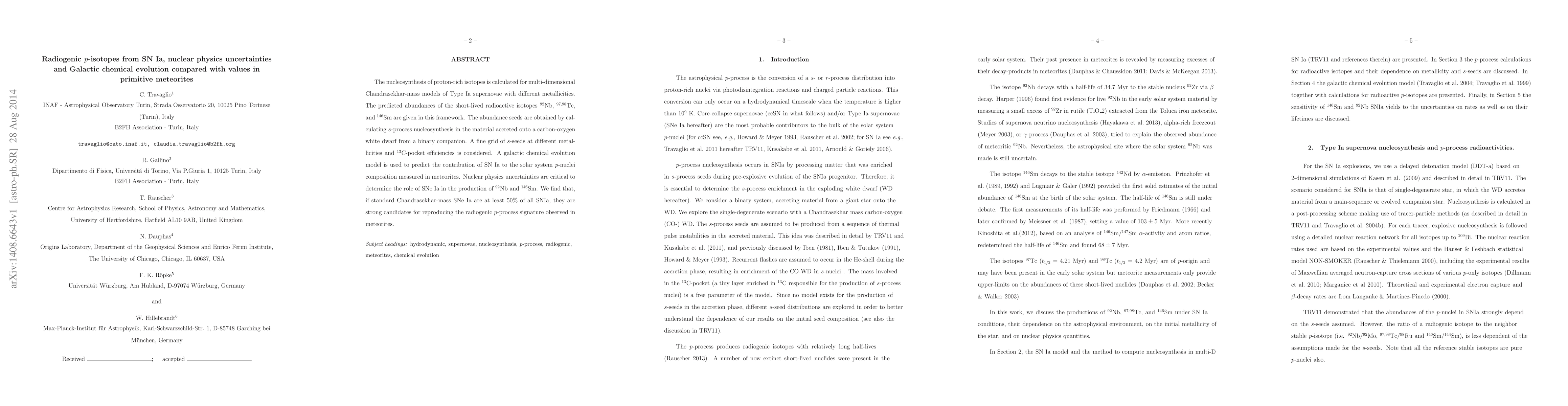 This paper investigates the nucleosynthesis of proton-rich isotopes in Type Ia supernovae (SNIa) and compares the predicted abundances of short-lived radioactive isotopes with those found in primitive meteorites, highlighting the importance of nuclear physics uncertainties in understanding Galactic chemical evolution.
