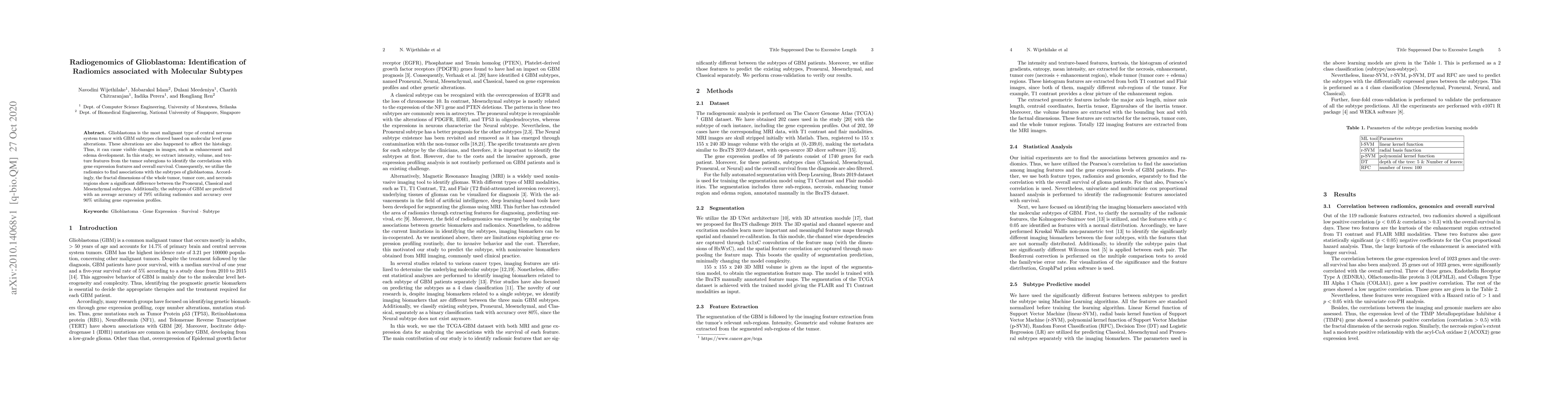 This study uses radiomics to identify correlations between tumor subregions and gene expression features in glioblastoma patients, with promising accuracy for subtype prediction.