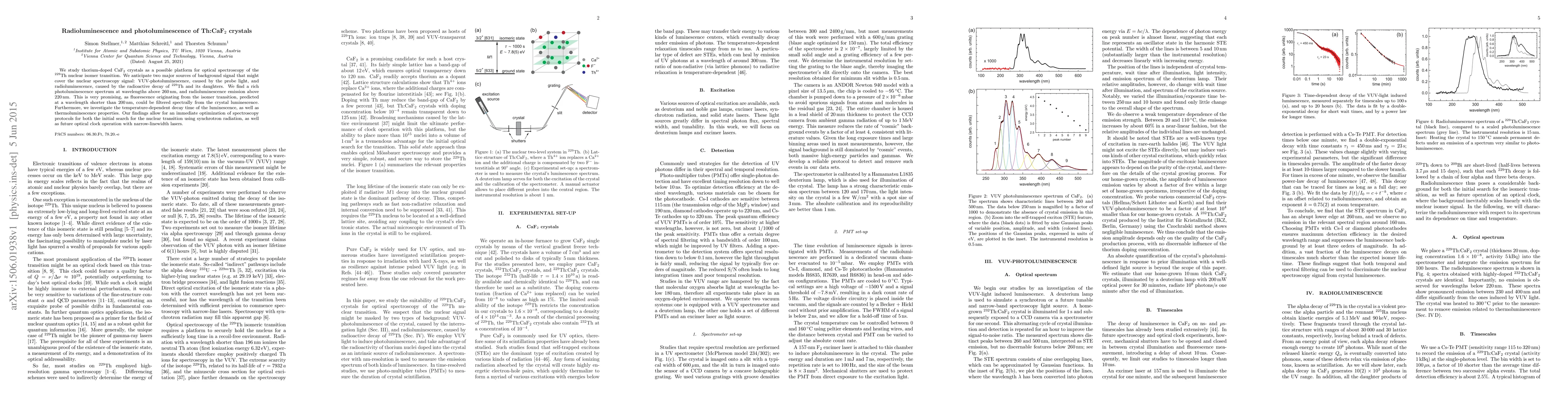 We study thorium-doped CaF$_2$ crystals as a possible platform for optical spectroscopy of the Th-229 nuclear isomer transition. We anticipate two major sources of background signal that might cover the nuclear spectroscopy signal: VUV-photoluminescence, caused by the probe light, and radioluminescence, caused by the radioactive decay of Th-229 and its daughters. We find a rich photoluminescence spectrum at wavelengths above 260 nm, and radioluminescence emission above 220 nm. This is very promising, as fluorescence originating from the isomer transition, predicted at a wavelength shorter than 200 nm, could be filtered spectrally from the crystal luminescence. Furthermore, we investigate the temperature-dependent decay time of the luminescence, as well as thermoluminescence properties. Our findings allow for an immediate optimization of spectroscopy protocols for both the initial search for the nuclear transition using synchrotron radiation, as well as future optical clock operation with narrow-linewidth lasers.