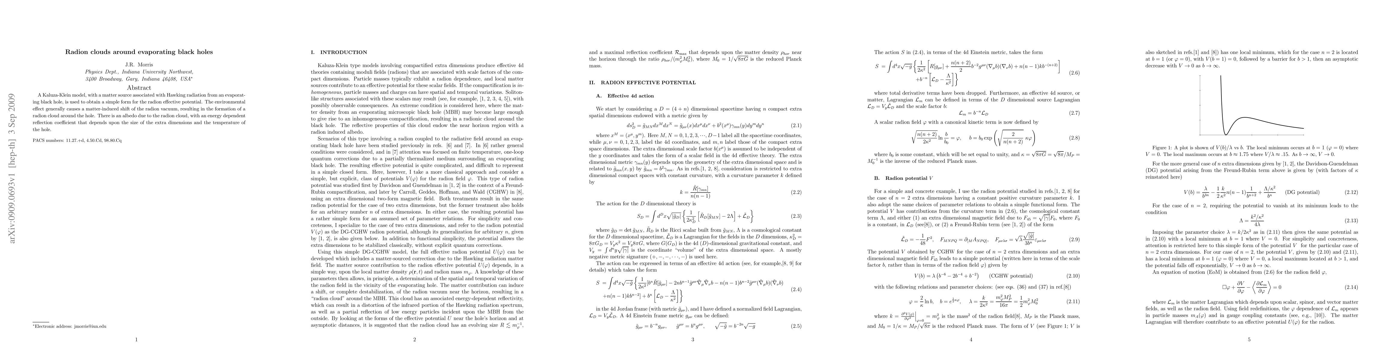 This research explores a Kaluza-Klein model where Hawking radiation from an evaporating black hole induces a radion cloud, causing a shift in the radion vacuum. The radion cloud results in an energy-dependent reflection coefficient, influenced by the size of extra dimensions and the black hole's temperature.