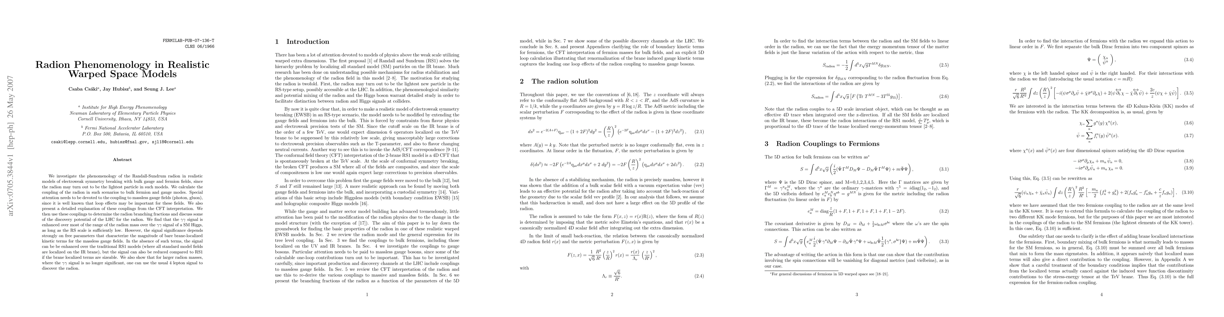 This paper explores the phenomenology of the Randall-Sundrum radion in realistic warped space models, focusing on its couplings to bulk fermions and gauge fields, especially massless gauge fields. The study finds that the radion's gamma-gamma signal can be significantly enhanced compared to a Standard Model Higgs, depending on the RS scale and the magnitude of brane-localized kinetic terms.