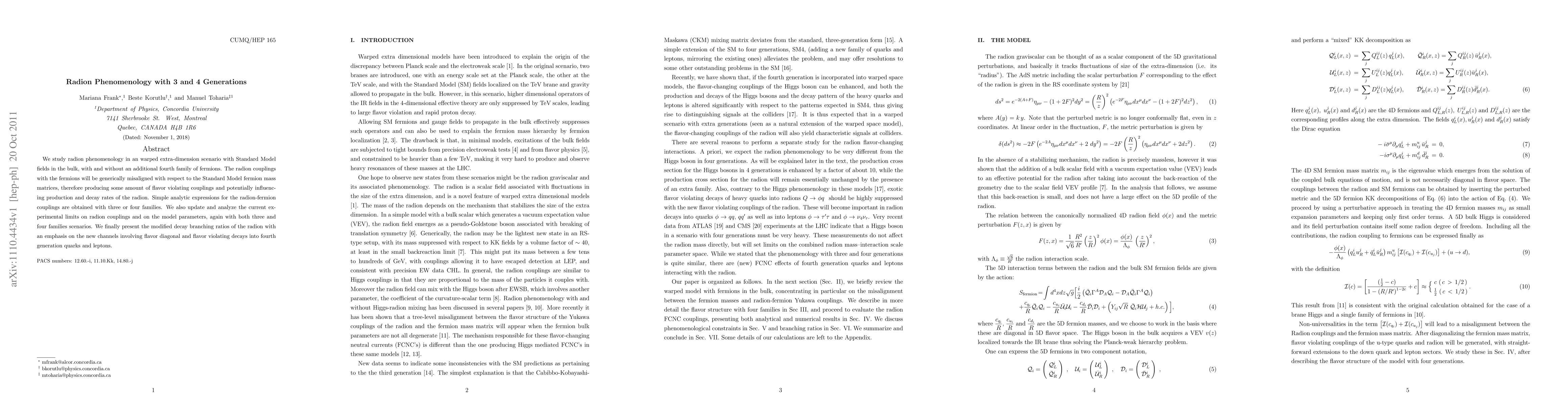This paper investigates radion phenomenology in a warped extra-dimensional model with three or four generations of fermions, focusing on the misalignment of radion couplings with fermion mass matrices that leads to flavor-violating interactions. It also updates experimental limits on radion couplings and analyzes the modified decay branching ratios, including new channels involving fourth generation particles.